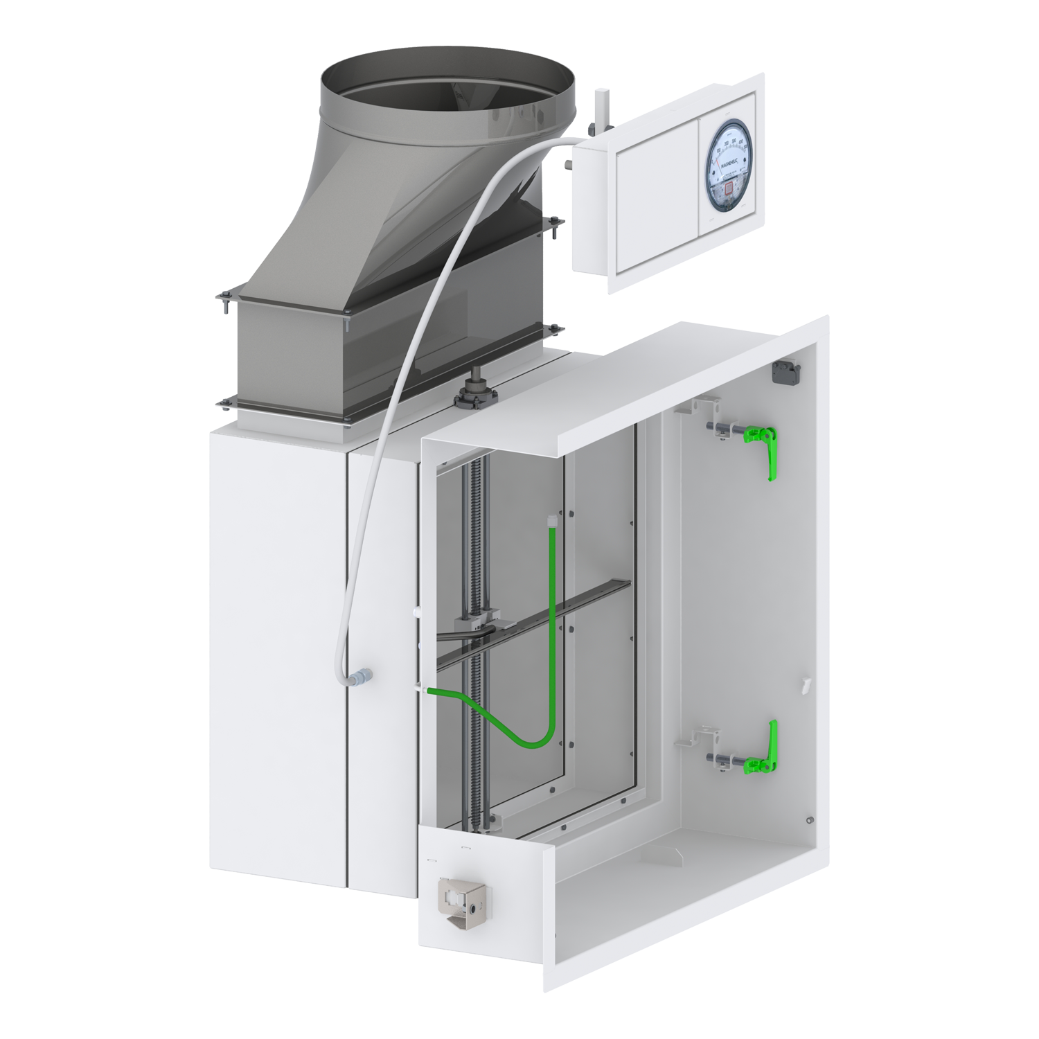 CleanSeal Exhaust Integritys unikke design giver mulighed for sikker og nem lækagetest og validering af HEPA-filteret fra rumsiden.