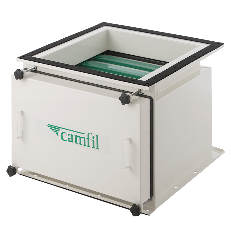 Camfil opfordrer kraftigt sygehuse til at anskaffe safe-change skabe, så sygehusets ansatte har en speciel pose, som de trække beskidte filtre ind i. Man må ikke bare dekontaminere rum, hvor der har ligget patienter med farlig smitte, men man skal også sikre personalet, der skifter filtre, mod at blive smittet.