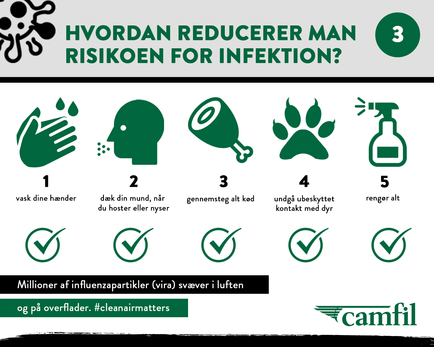 Derfor - for ekstra beskyttelse mod luftbårne patogener - bør du overveje at installere passende HEPA-filtre.