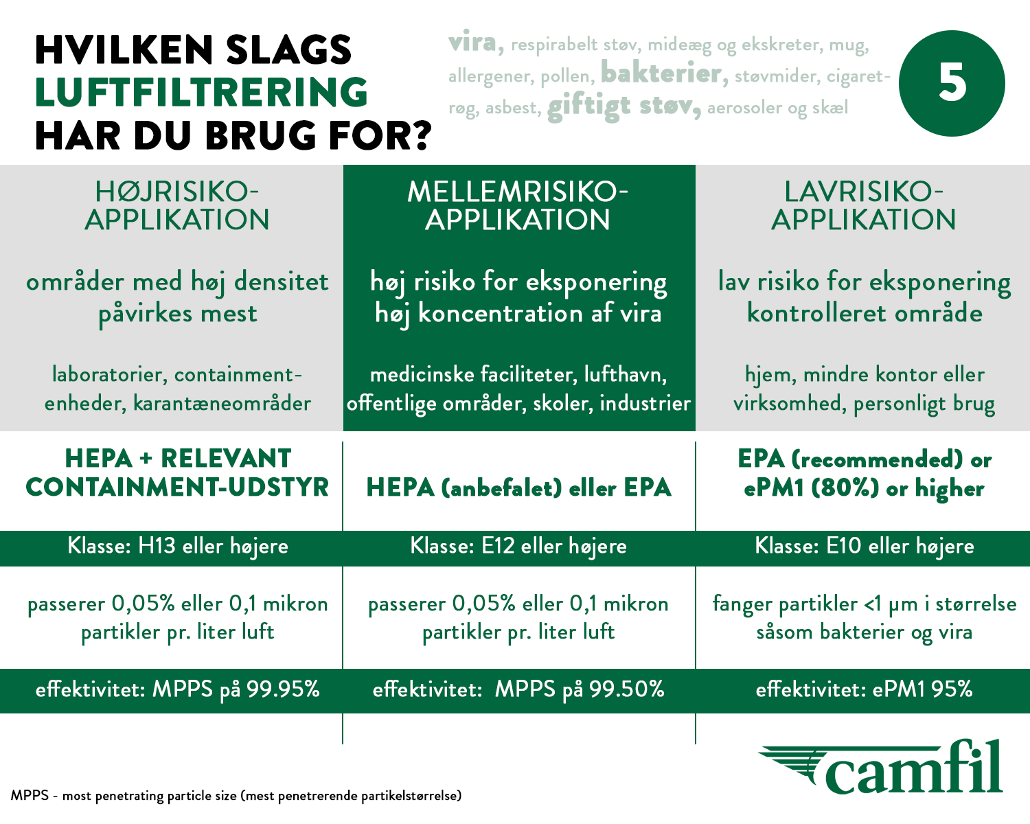 HEPA-filtre (High Efficiency Particulate Arrestance), som f.eks. bruges i luftrensere, har i flere årtier bevist - på tværs af en lang række sundhedsfaciliteter og biovidenskabelige applikationer - at de kan hindre spredning af luftbårne partikler og organismer såsom vira og bakterier.