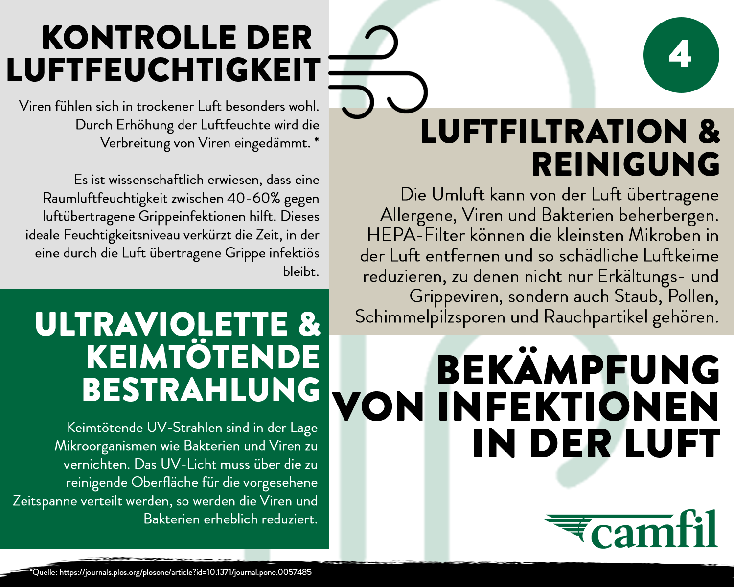 Für einen zusätzlichen Schutz vor luftübertragenen Krankheitserregern sollten Sie den Einbau geeigneter hocheffizienter HEPA-Filter in Erwägung ziehen.