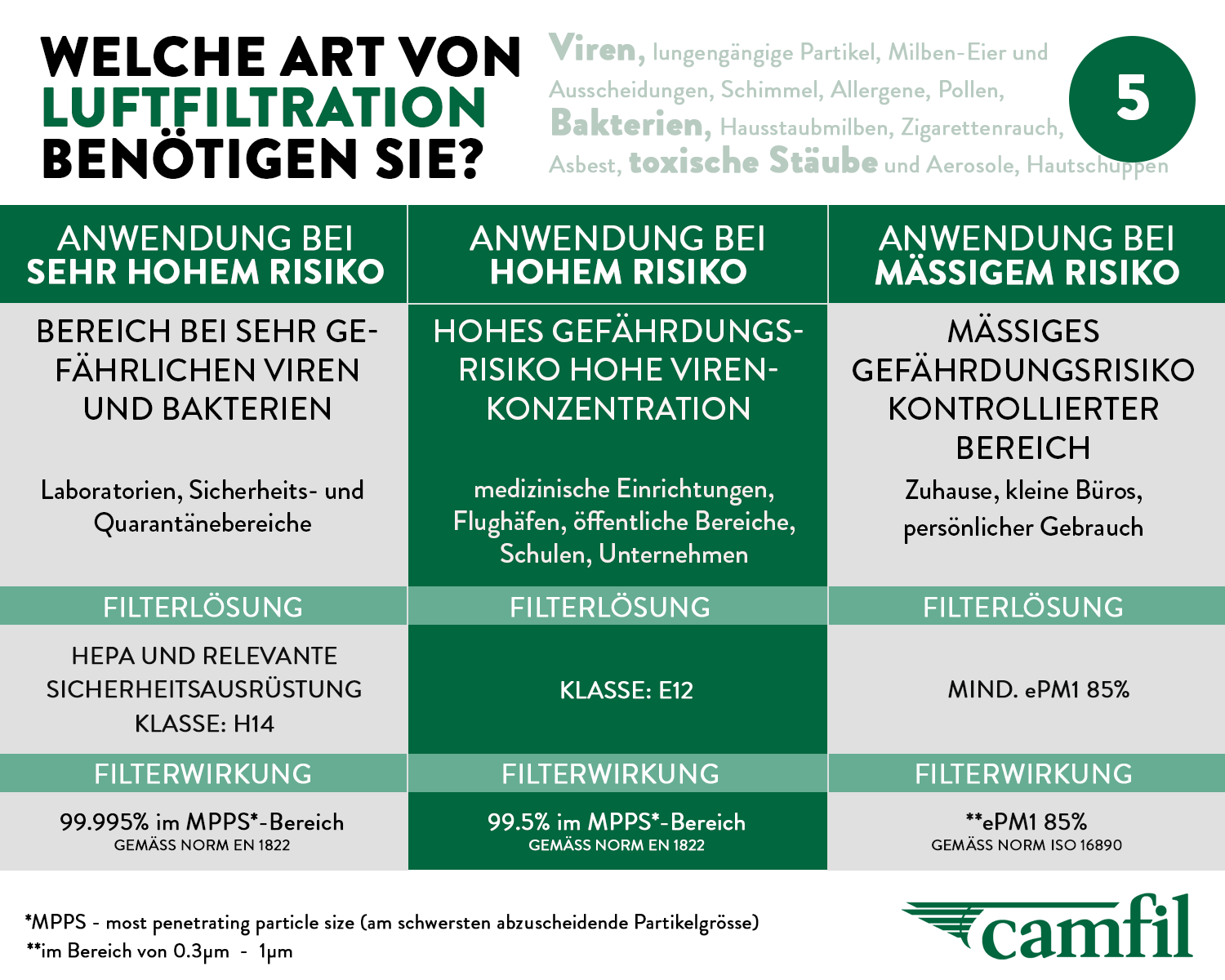 HEPA-Filter(Schwebstofffilter) haben sich über Jahrzehnte in einer Vielzahl von Einrichtungen des Gesundheitswesens und Life Science bewährt, da sie die Ausbreitung von Partikeln und Organismen wie Viren und Bakterien in der Luft reduzieren.