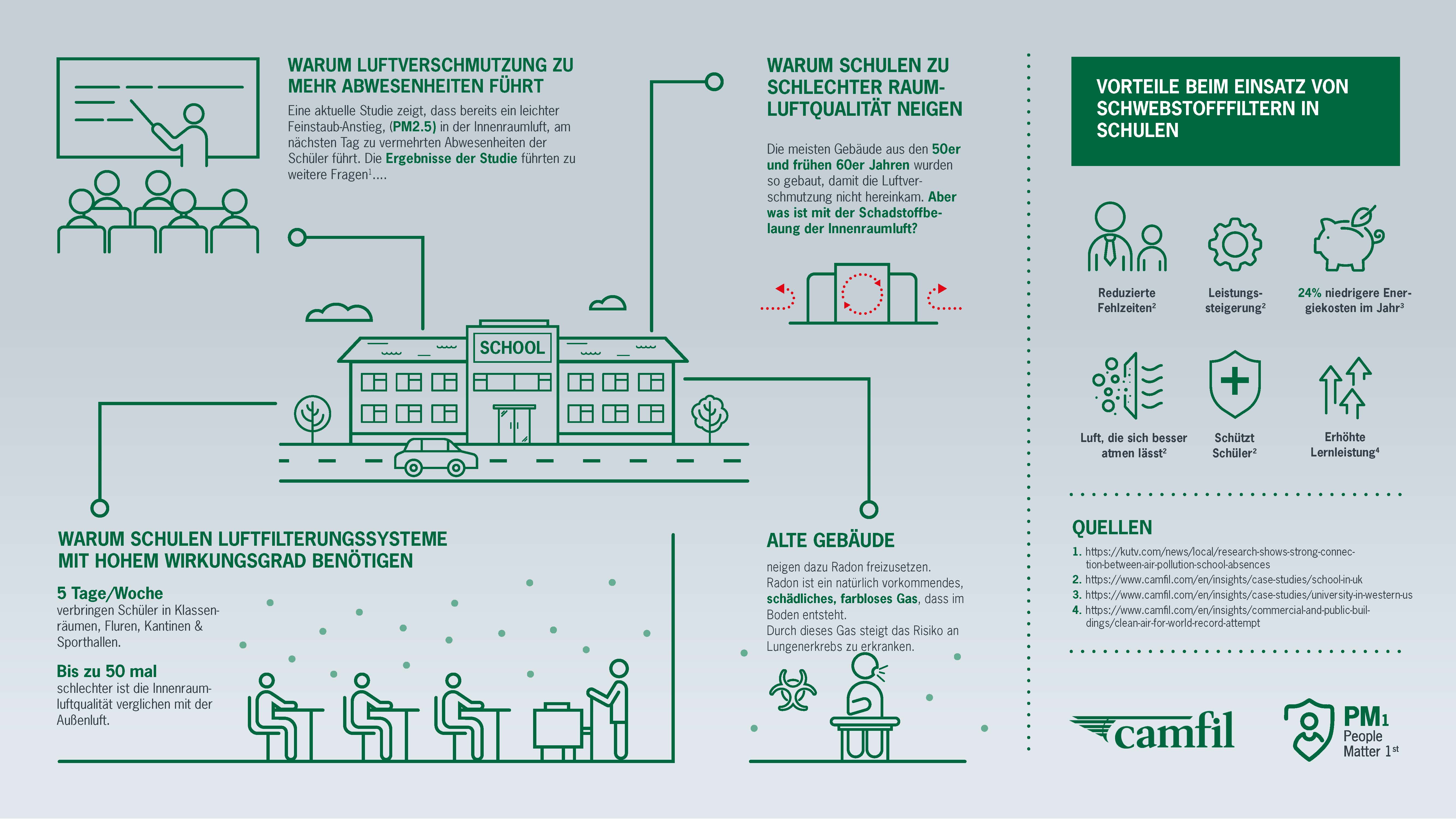 Da die Konzentrationen einiger Schadstoffe innerhalb eines Gebäudes bis zu 50 Mal höher sind als außerhalb, ist es besonders wichtig, dass Schulen mehr für den Schutz ihrer Schüler und Schülerinnen, sowie Lehrer und Lehrerinnen tun.