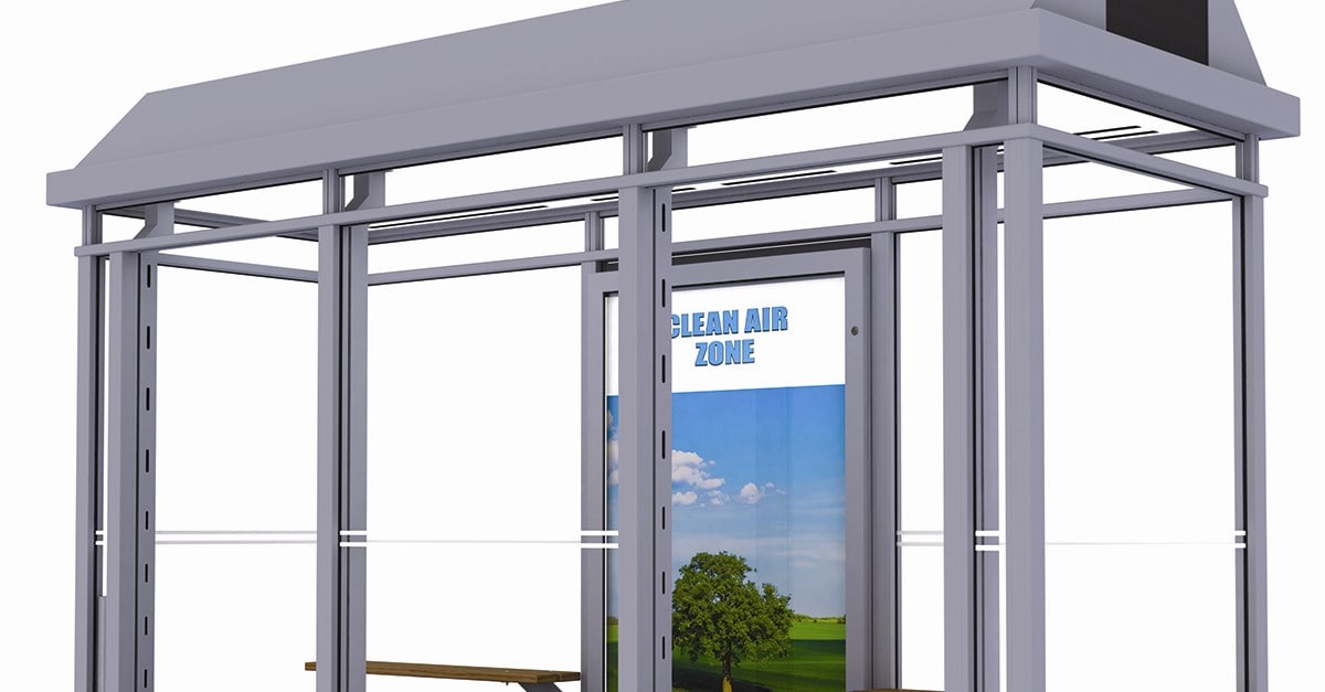 Kontaminierte Luft wird durch Vorfilter an beiden Enden in das Dach des Clean Shelter gesaugt, um von Camfil's neuestem Luftreiniger weiter gereinigt zu werden. Die zu 85 Prozent gereinigte Luft wird dann durch Öffnungen im Dach in den Unterstand geblasen. Damit sich die wartenden Passagiere sicher fühlen, ist der Unterstand mit einem Luftschleier ausgestattet, der anstelle von Türen Öffnungen als Barriere nach außen aufweist. Die Luftreiniger arbeiten mit einem niedrigen Geräuschpegel, und die Passagiere, die auf den Bus warten, werden keine nennenswerte Trockenheit erleben.