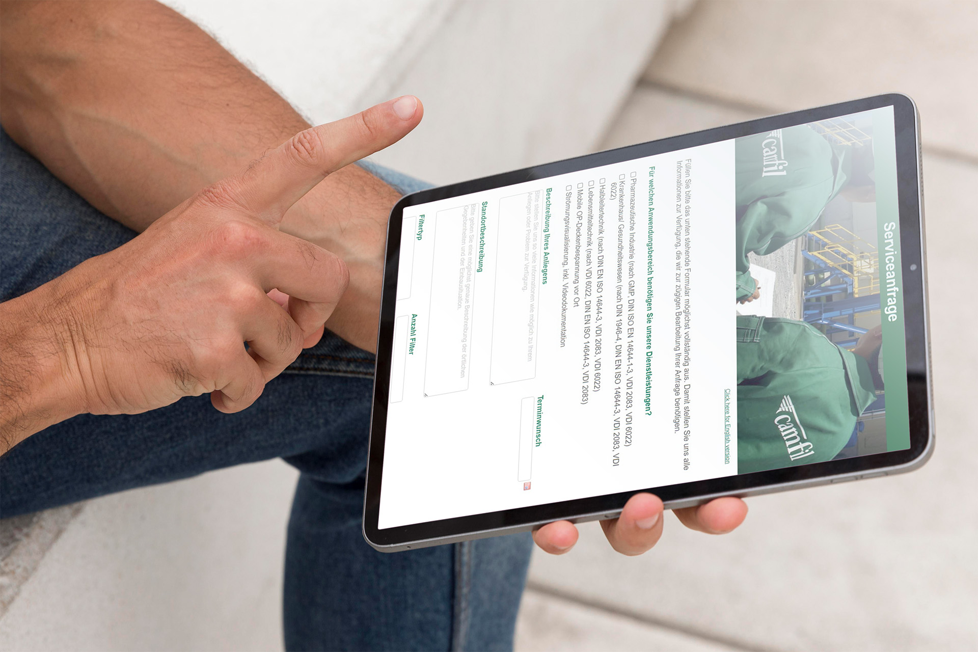 Camfil bietet professionelle Unterstützung in den Bereichen Gesundheitswesen, Life Science, Mikroelektronik und Lebensmittel. Unsere Servicemitarbeiter verfügen über branchenspezifisches Fachwissen und arbeiten gemäß DIN 1946-4, DIN EN ISO 14644-3, VDI 2083-3 und VDI 6022.