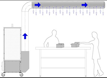 In der Luft befindliche Mikroorganismen wie Viren und Bakterien haften an größeren Partikeln und wandern durch sie hindurch. Ihre durchschnittliche Reisezeit steigt mit dem Durchmesser des Partikels, an dem sie haften, und erhöht somit das Risiko, mit dem Personal im selben Raum in Kontakt zu kommen. Daher ist es von entscheidender Bedeutung, die in der Luft schwebenden Partikel zu reduzieren, um eine wesentliche Verringerung der mikrobiologischen Kontamination durch den Einsatz hocheffizienter Filtersysteme (HEPA) zu erreichen, die in der Lage sind, sowohl mikrobiologische Verunreinigungen, die kleiner als ein Mikrometer sind, als auch Partikel mit einem größeren Durchmesser, an denen sie haften, zurückzuhalten.