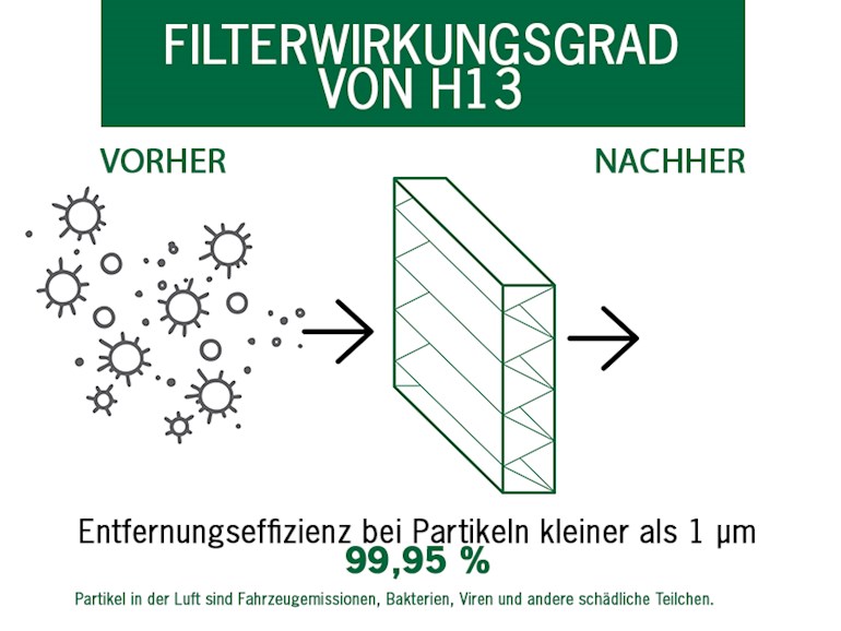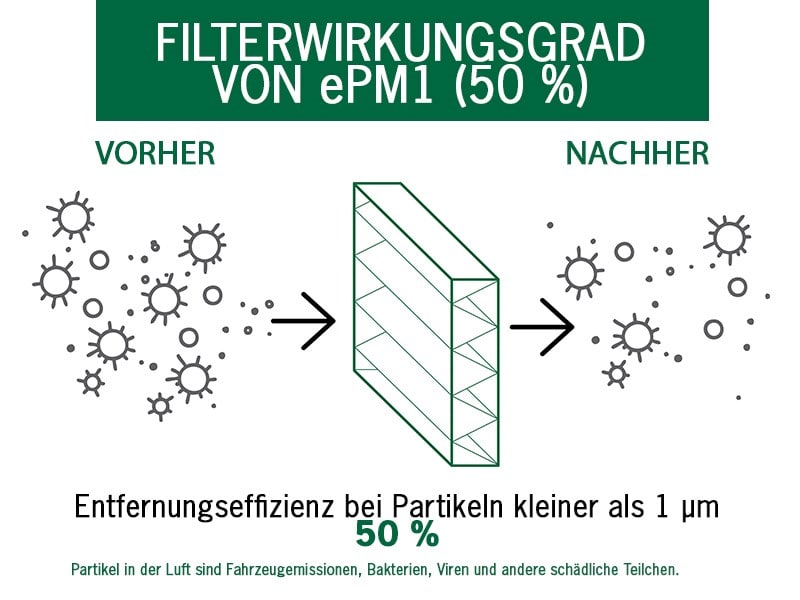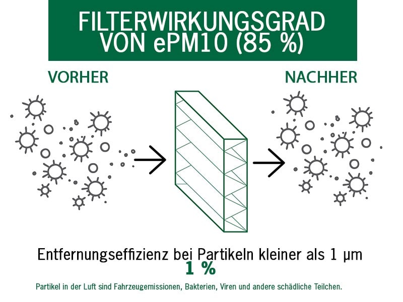 Es ist festzustellen, ob eine Erhöhung der Außenluftversorgung und die Eliminierung oder Reduzierung von Umluft möglich ist. Modifikationen am Lüftungssystem, wie die Installation eines Luftströmungskontrollsystems, das eine Maximierung der Frischluftversorgung und eine Minimierung der Umluft ermöglicht. Sollte die Nutzung von Umluft unvermeidbar sein, rüsten Sie auf leistungsstarke Filter auf, die Partikel der Größe von <1 Mikrometer erfassen können (ISO ePM1 80 % und höher). Stellen Sie darüber hinaus sicher, dass der Motor Ihrer Innenraumlüftung über ausreichend Leistung für dieses Upgrade verfügt.