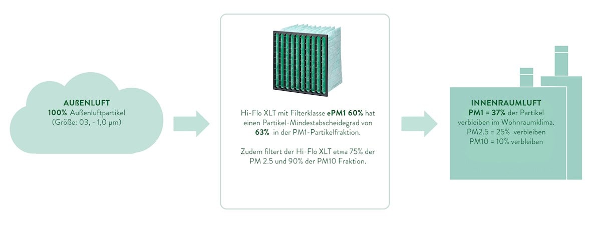 Neben Filtern mit einer hohen Filterklasse ist ein ausreichender Luftstrom wesentlich, um eine gute Innenraumluftqualität zu erzielen. Bei einem unzureichenden Luftstrom ist selbst die sauberste Luftversorgung nicht ausreichend, um die allgemeine Innenraumluftqualität zu beeinflussen.
