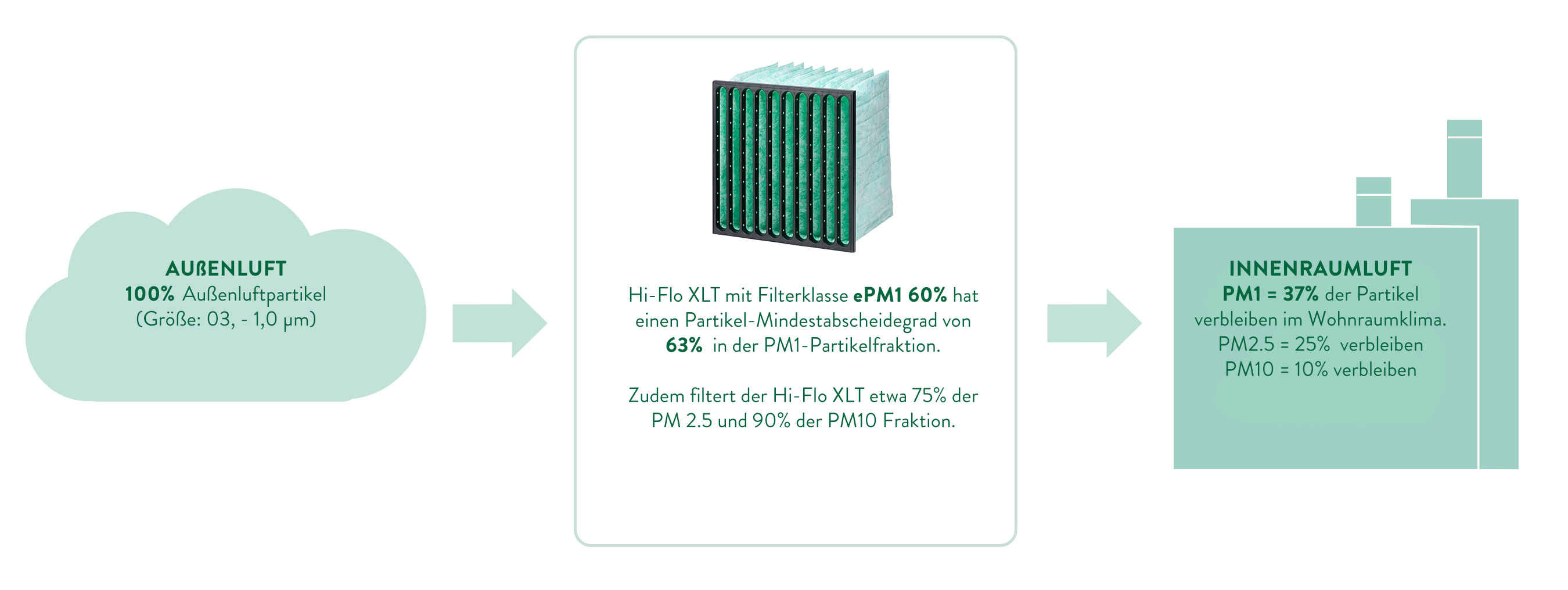 Neben Filtern mit einer hohen Filterklasse ist ein ausreichender Luftstrom wesentlich, um eine gute Innenraumluftqualität zu erzielen. Bei einem unzureichenden Luftstrom ist selbst die sauberste Luftversorgung nicht ausreichend, um die allgemeine Innenraumluftqualität zu beeinflussen.