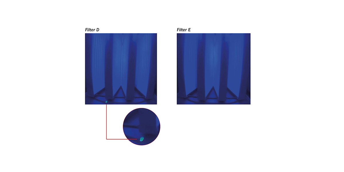 Optional dye test for water droplets: Is the filter hydrophobic? |