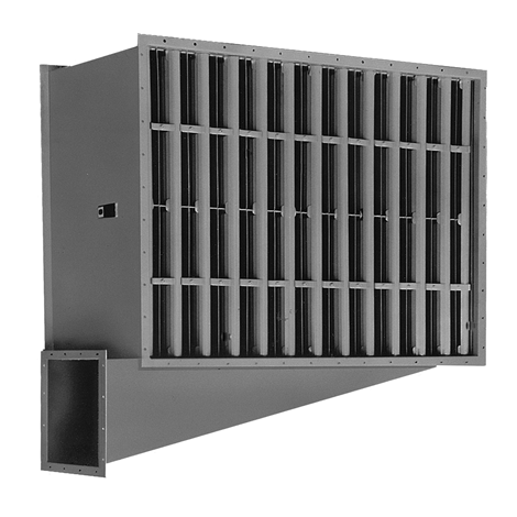 Construction: 11 gauge steel all welded construction, bolt on flange for HVAC system connection and bleed outlet,removable blade pack and four mesh inlet screens. Material of construction can be Mild Steel, SS304 & SS316