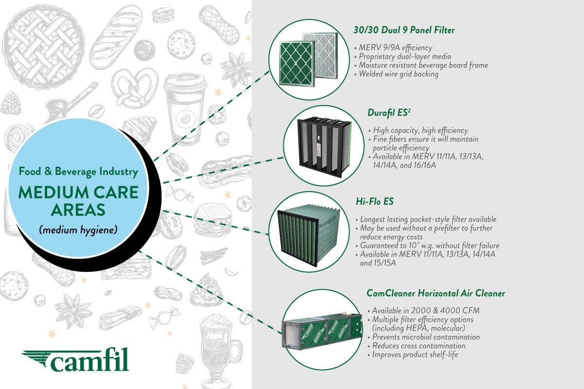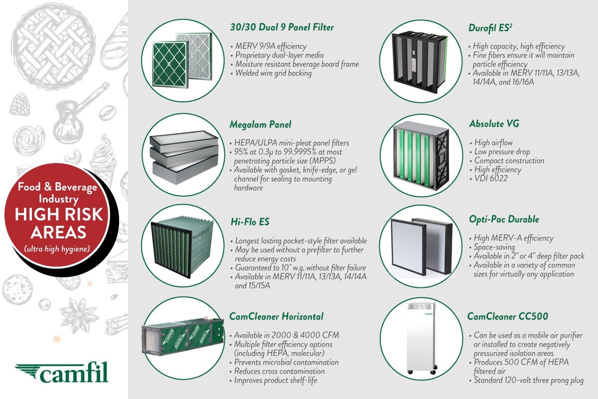 Camfil offers the food & beverage industry a complete range of air filters – specially designed for use in processes with strict requirements for safety, traceability, and control.