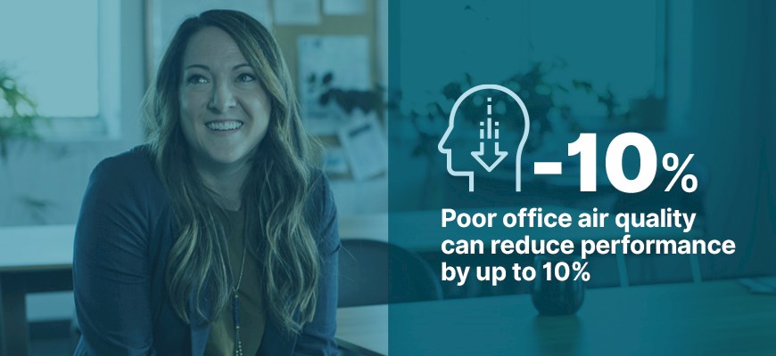 Cuando las personas regresaron a sus lugares de trabajo tras la pandemia de la COVID-19, lo hicieron a menudo con una mayor conciencia de la importancia del aire limpio en interiores. La mayoría de nosotros pasamos el 90 % de nuestro tiempo en interiores y la mayor parte de ese tiempo en el trabajo. Y sabemos que hasta el 70 % de los trabajadores de oficina se preocupan por la calidad del aire en su lugar de trabajo.