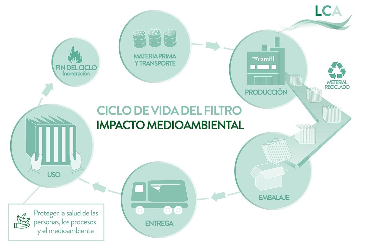 Camfil impulsa el trabajo de sostenibilidad con el Análisis del Ciclo de Vida (LCA) y las Declaraciones Ambientales de Producto (EPDs) Creemos que nuestras soluciones de filtración y control de la contaminación pueden marcar una diferencia real. Pero también creemos que cualquier reivindicación medioambiental debe estar respaldada por un análisis transparente e independiente. Por eso hemos desarrollado las EPDs y realizamos un Análisis del Ciclo de Vida (LCA). Estas actividades desempeñan un papel importante en nuestros esfuerzos por reducir nuestra huella de carbono y satisfacer el interés de los clientes por la sostenibilidad. Todo este trabajo también está directamente relacionado con el Objetivo global número 12 de la ONU, el consumo y la producción responsables.