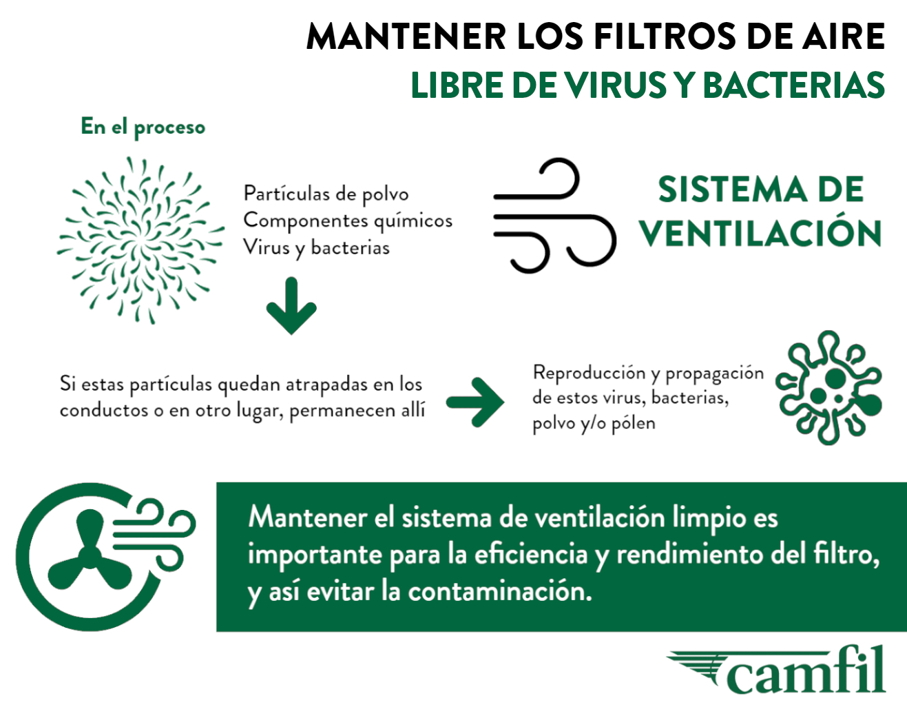 Su sistema HVAC es clave para asegurar que se introduzca suficiente aire de impulsión en sus instalaciones. Asegurarse de que el aire que se introduce y se limpia según los estándares requeridos es esencial para reducir los niveles de partículas en sus instalaciones. REHVA recomienda que la mayoría de las instalaciones utilicen filtros de aire de ePM1 como filtro final para el aire de impulsión, con filtros de ePM1 al 60% para la filtración de dos etapas y de ePM1 al 80% para la filtración de una sola etapa. Se deben realizar otras comprobaciones y consideraciones de HVAC. Descargue nuestra lista de comprobación de cumplimiento de HVAC para obtener más información.