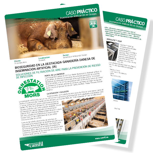 Históricamente, no ha habido muchos casos de infección en el sector danés de la inseminación artificial (IA), pero en los últimos años la atención a la bioseguridad se ha agudizado considerablemente debido a la gripe porcina, la peste porcina africana y el virus del PRRS, etc. Potencialmente, un caso de infección en un verraco podría tener graves consecuencias para los clientes. Por ello, las empresas de cría han establecido requisitos estrictos para evitar cualquier incidente. Uno de los requisitos es que las yeguadas de inseminación artificial (IA) en Dinamarca deben instalar filtración o rayos UVC en el sistema de ventilación que proporciona aire limpio y fresco en las instalaciones de IA para evitar infecciones entre los cerdos.