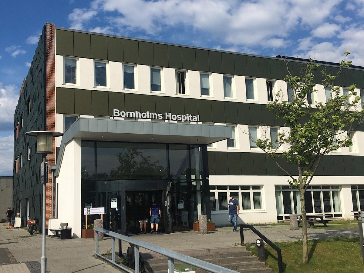 El Hospital de Bornholm está situado en Rønne, en Bornholm, y es un hospital local para los habitantes de Bornholm y Ertholmene, así como para los numerosos turistas que visitan las islas cada año. El Hospital de Bornholm, que forma parte del sistema hospitalario de la Región Capital, cuenta con unos 570 empleados a tiempo completo y en 2018 tuvo algo menos de 7.000 ingresos y unas 65.000 visitas ambulatorias.