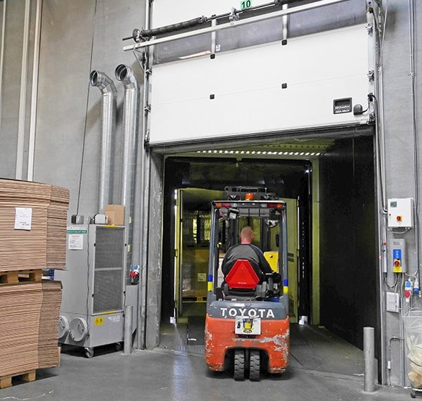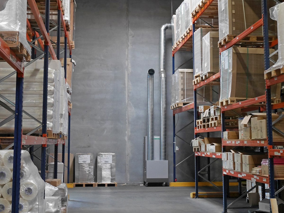 Emballage es un proveedor integral de envases industriales para el embalaje y la expedición. Se trasladaron a unas nuevas instalaciones con seis naves para el almacenamiento de envases. El edificio de oficinas tiene ventilación, pero en los nuevos pasillos los empleados podían ver claramente el polvo que se agitaba en el aire como una espesa niebla cuando entraba el sol.