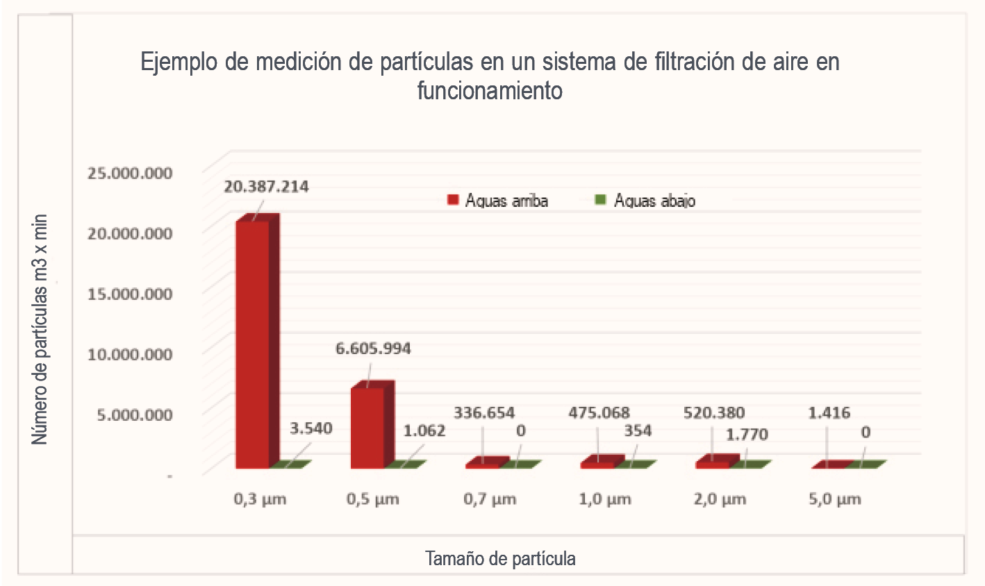 MEDICIONES: Poco después de la puesta en funcionamiento del purificador de aire, la carga de partículas ya se redujo a más de la mitad. (Ver gráfico)