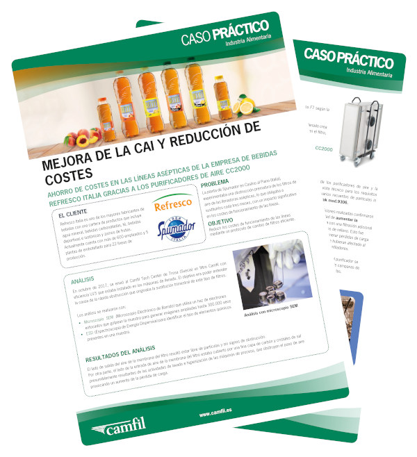 Gracias al uso de los purificadores de aire Camfil CC2000, se obtuvieron los siguientes resultados en la planta de Spumador: