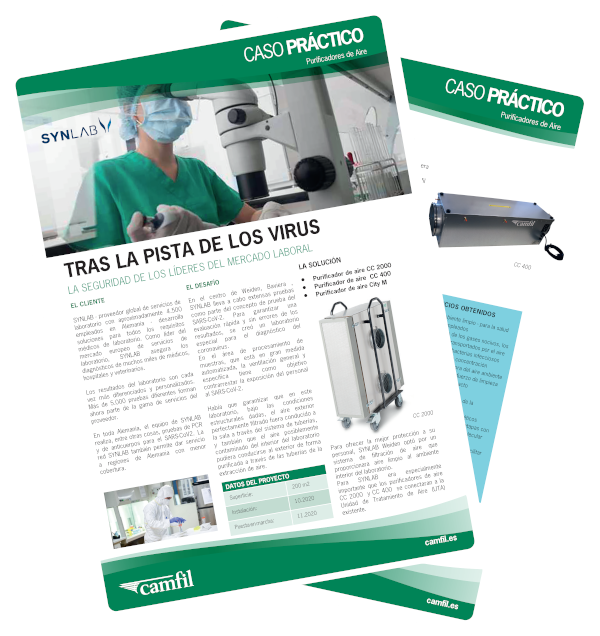 Para ofrecer la mejor protección a su personal, SYNLAB Weiden optó por un sistema de filtración de aire que proporcionara aire limpio al ambiente interior del laboratorio. Para SYNLAB era especialmente importante que los purificadores de aire CC 2000 y CC 400 se conectaran a la Unidad de Tratamiento de Aire (UTA) existente.