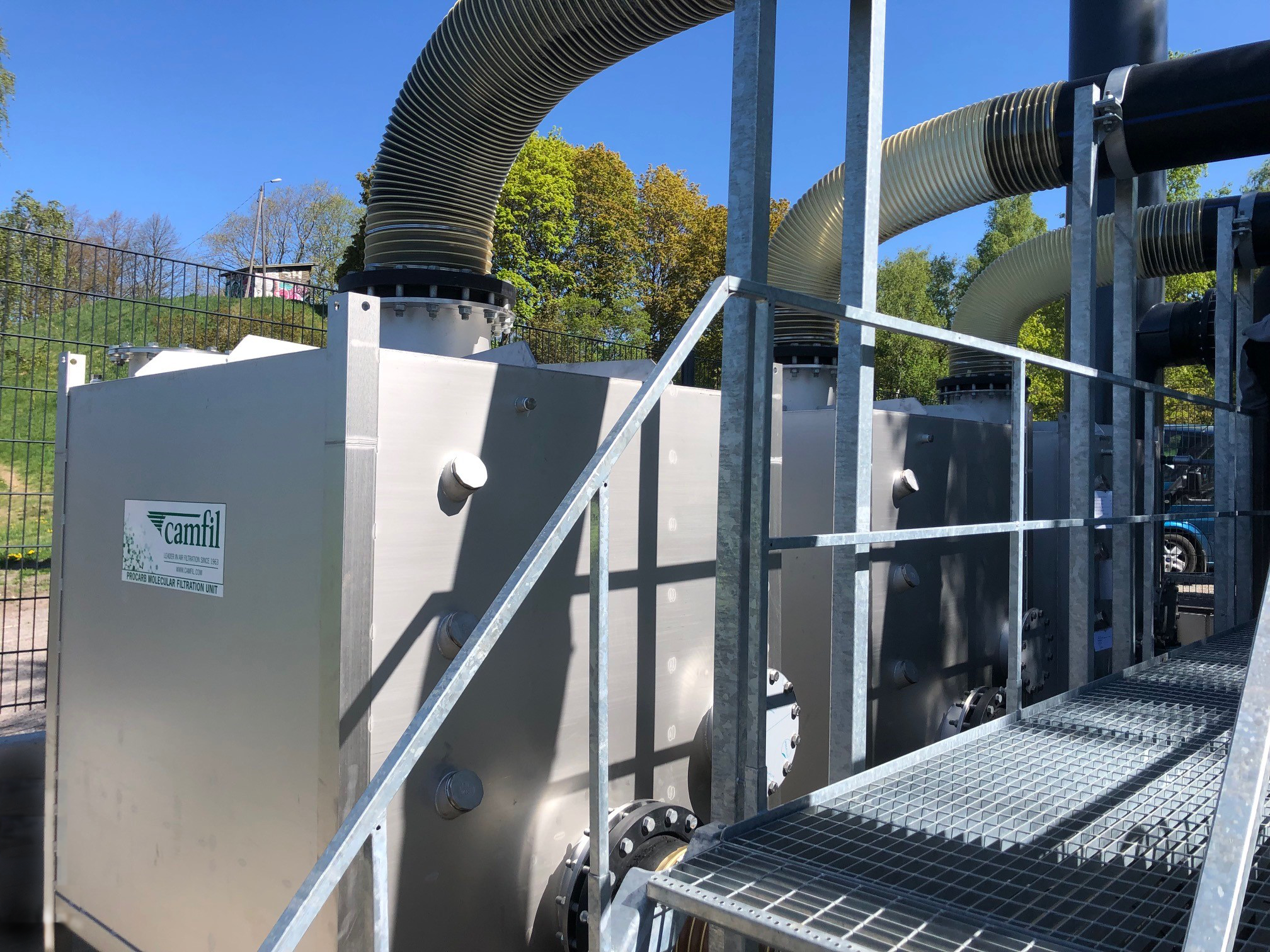 Camfil toimitti keväällä 2022 Turun seudun puhdistamo Oy:n vuokraamat aktiivihiilisuodatinyksiköt viemäriverkoston hajunpoistoa varten.