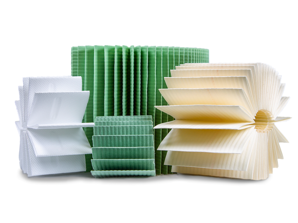 Mélange exclusif de fibres de cellulose et de fibres de polyester pour des propriétés optimales de libération de la poussière, ce qui permet d'obtenir une longue durée de vie et une efficacité de filtration élevée (couleur : vert). Ce média est utilisé pour traiter des poussières non-explosives. Il fait partie de notre gamme de filtres verts HemiPleat.
