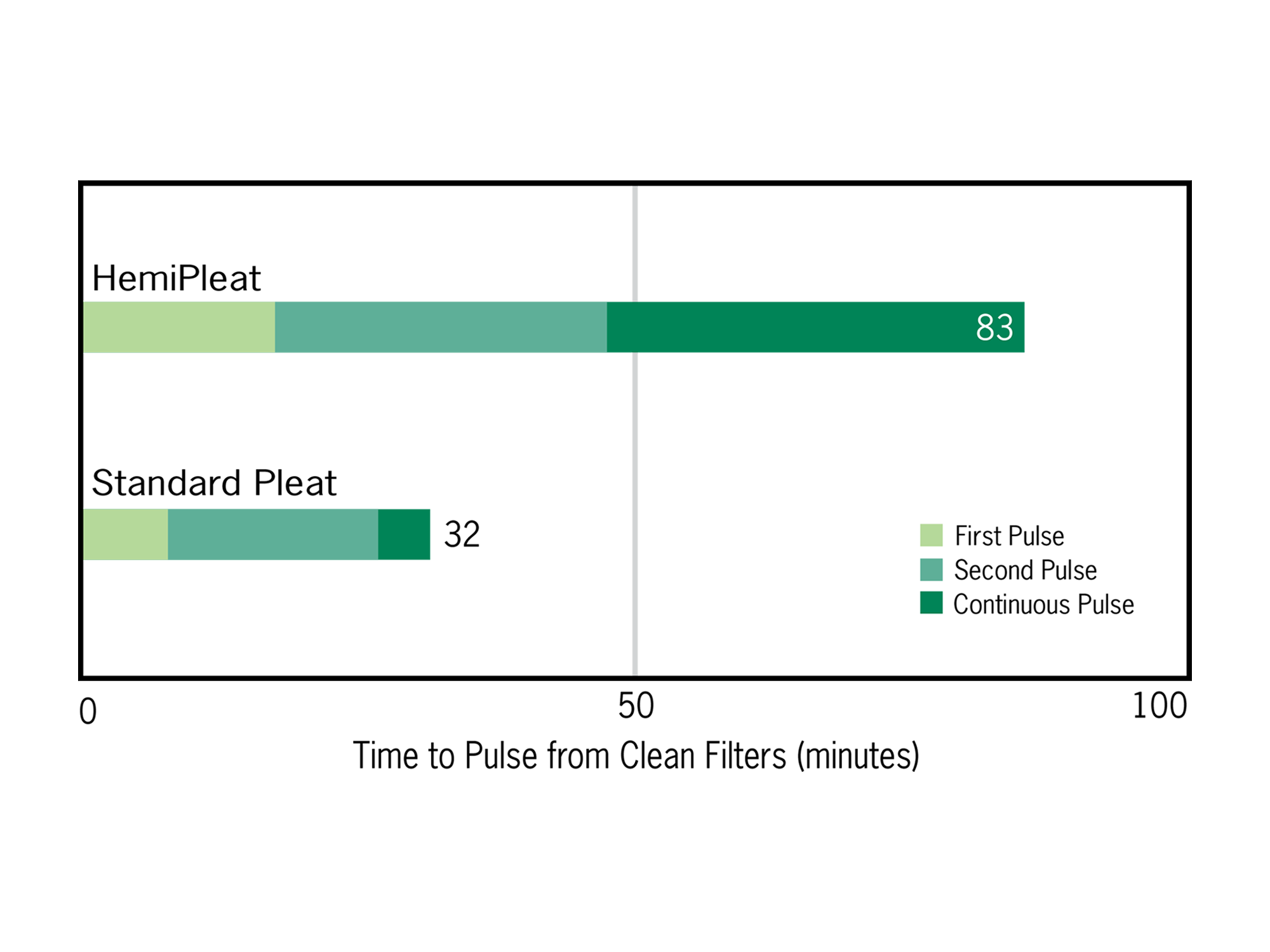 Le média HemiPleat réduit la perte de charge du filtre et facilite la libération des particules de poussières et de fumées pendant le processus de décolmatage. De plus, en utilisant moins d'air comprimé et en réduisant la consommation d'énergie du moteur du ventilateur, vous économisez de l'argent.