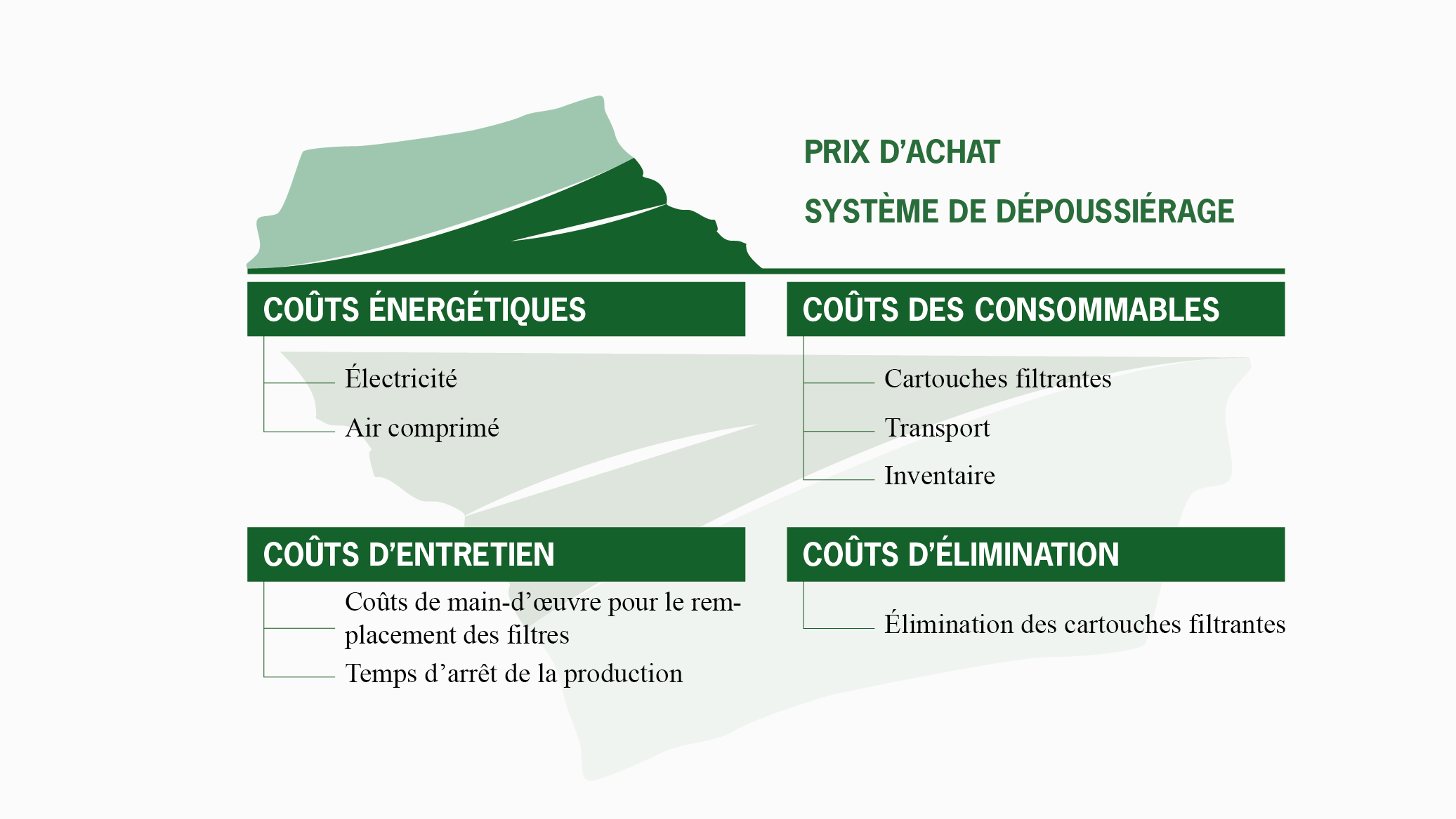 Lors de l’achat de systèmes de dépoussiérage et de cartouches filtrantes, le prix d’achat initial n’est que la partie émergée de l’iceberg. Les coûts réels (énergie, consommables et main d’œuvre) sont cachés. La bonne nouvelle, c’est qu’il existe des moyens de réduire ces coûts cachés.