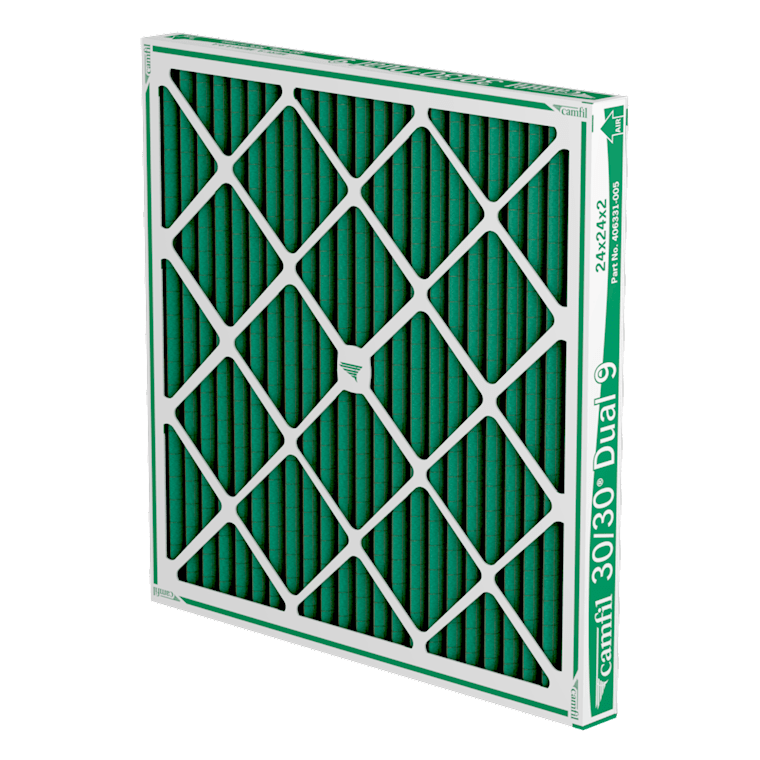 High efficiency MERV 13 pleated panel air filter. MERV 13 performance in a 1", 2" or4" depth to meet LEED requirements. Radial pleats with welded wire backing for higher dust holding capacity and longer life.