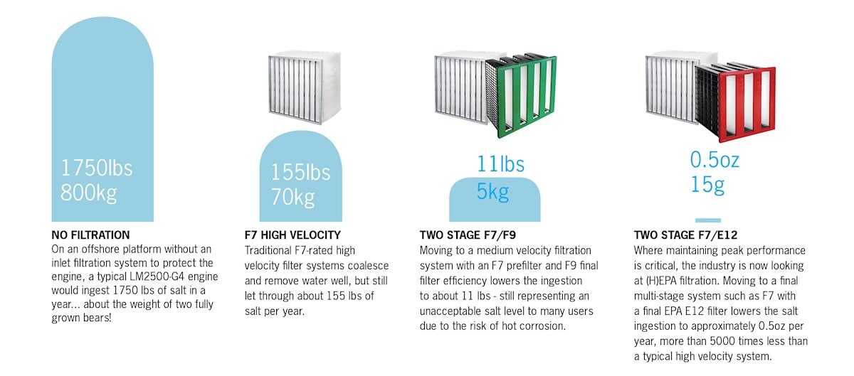 2. Éliminez le sel provenant de l'air avant qu'il n'atteigne la turbine à gaz à l’aide d’une solution de filtration d'entrée d'air présentant des caractéristiques de conception spécifiques.