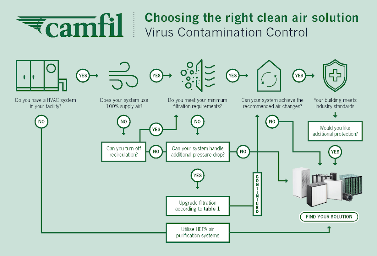 Nous passons jusqu'à 90 % de notre temps à l'intérieur, ce qui fait de l'air propre l'une des priorités sur notre lieu de travail. Il n'y a pas que l'air extérieur qui affecte l'environnement intérieur. Nous l'influençons nous-mêmes fortement en utilisant des produits chimiques, des produits de nettoyage, des bougies, avec la fréquence de nettoyage, mais aussi avec des objets comme les plantes et les textiles qui ont un impact sur la qualité de l'air. Les gouttelettes sécrétées lorsque nous éternuons et que nous toussons ne sont pas traités par les filtres de la ventilation. Pour éviter la propagation de bactéries et de virus dans l’espace intérieur, Camfil recommande d'installer des purificateurs d'air.