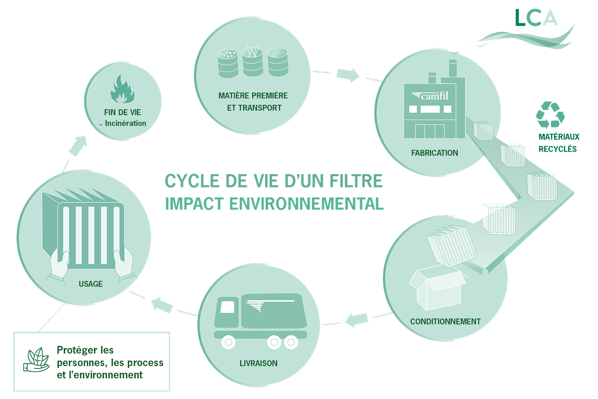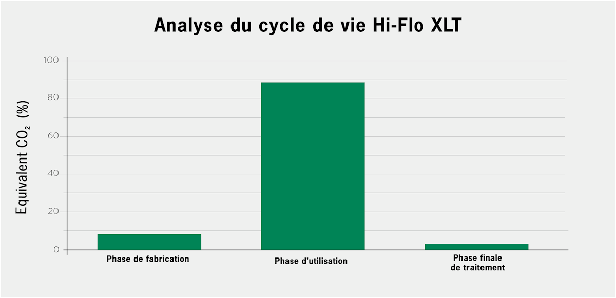 La durée de vie du filtre est cruciale sur son impact environnemental. La quantité d'énergie que le ventilateur utilise pour aspirer l'air à travers un filtre à air représente environ 90 % de l'impact climatique total du filtre.