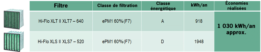 Cette classification permet aux clients de mieux comprendre la consommation annuelle d'énergie, l’efficacité moyenne et l’efficacité minimale. Vous pouvez voir qu'un filtre A + contribue à réduire la consommation d'énergie et les émissions de dioxyde de carbone. Sur la base d'un processus de certification étendu, les produits certifiés par Eurovent doivent indiquer la consommation énergétique annuelle (kWh/an) spécifiquement pour chaque efficacité ISO et être testés dans des laboratoires indépendants et par échantillonnage aléatoire du fabricant. Les données certifiées sont disponibles sur le site web d'Eurovent :  www.eurovent-certification.com