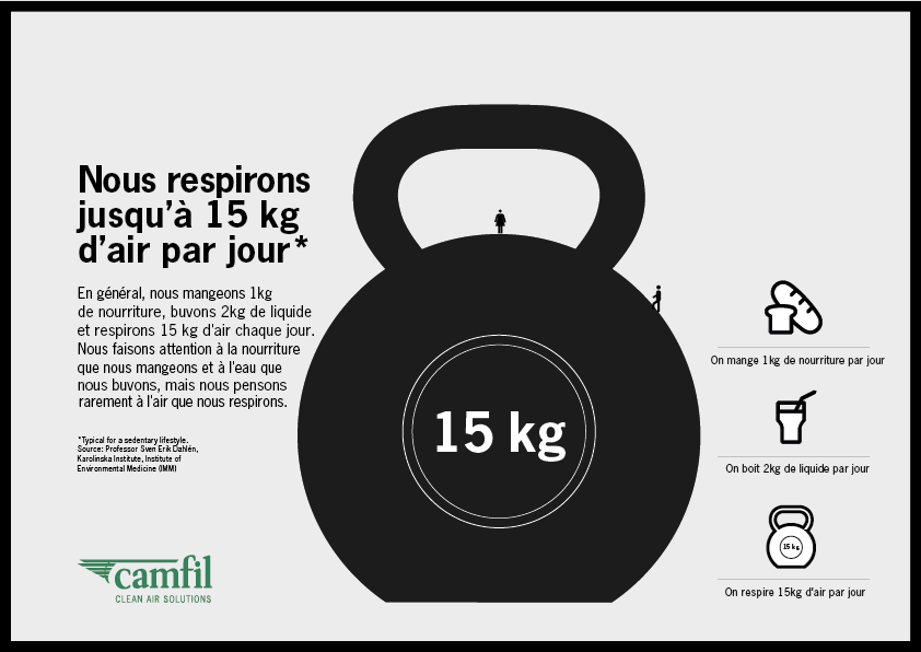 À l'intérieur, nous sommes exposés à une multitude de particules et de contaminants qui ont un impact direct sur notre santé. Si l'air d’alimentation n'est pas filtré efficacement, vous risquez d'ajouter un nombre important de particules nocives à l'air intérieur. Ces particules pénètrent dans notre système respiratoire et peuvent continuer dans notre système cardiovasculaire.