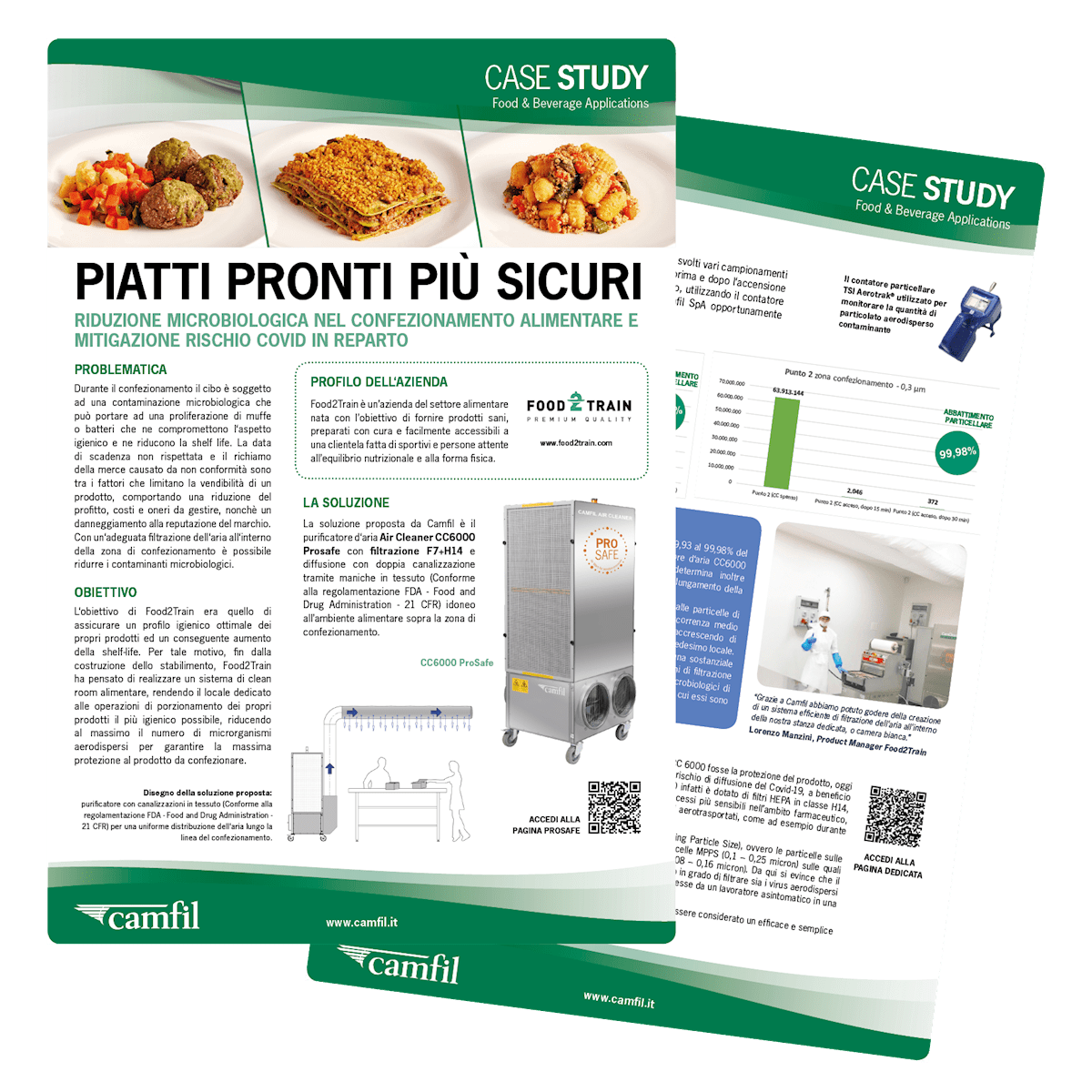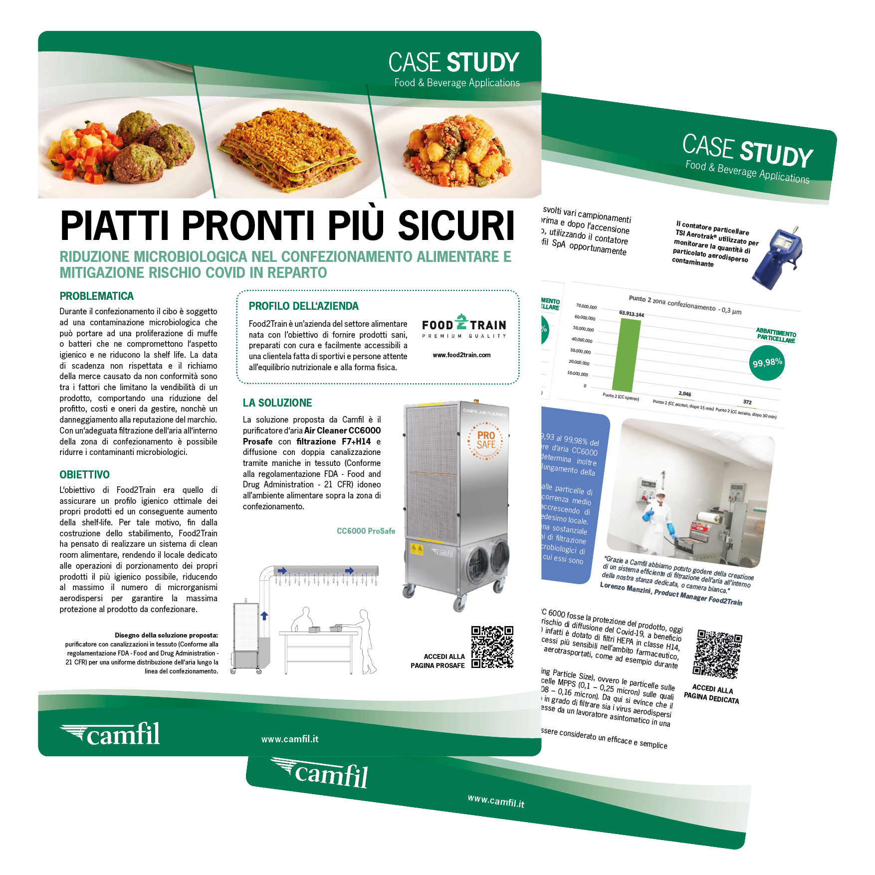 L‘obiettivo di Food2Train era quello di assicurare un profilo igienico ottimale dei propri prodotti ed un conseguente aumento della shelf-life. Per tale motivo, fin dalla costruzione dello stabilimento, Food2Train ha pensato di realizzare un sistema di clean room alimentare, rendendo il locale dedicato alle operazioni di porzionamento dei propri prodotti il più igienico possibile, riducendo al massimo il numero di microrganismi aerodispersi per garantire la massima protezione al prodotto da confezionare.