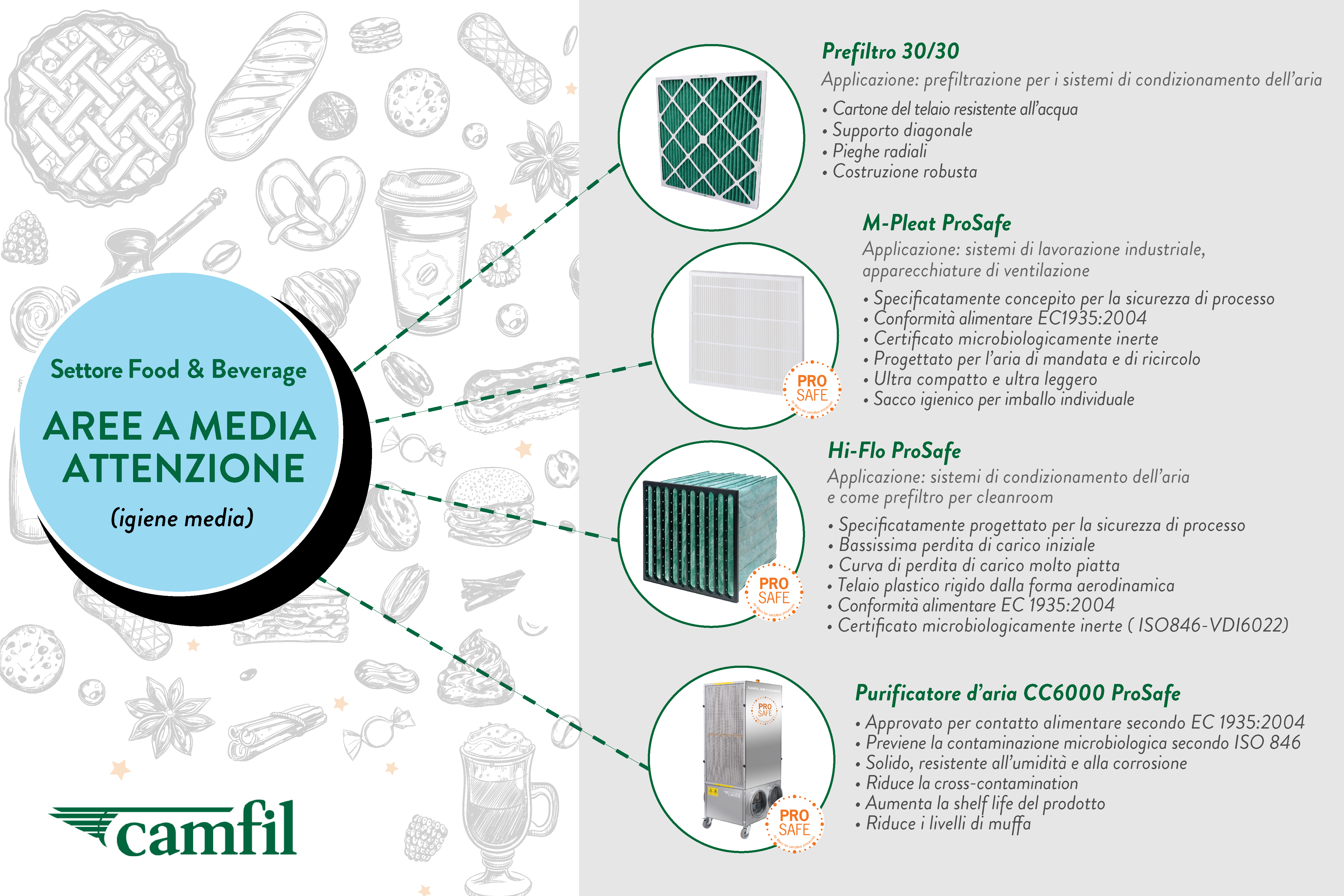 Camfil sta lavorando in accordo con alcune delle più grandi aziende produttrici di alimenti e bevande al mondo. Che si tratti di misure di prevenzione della pandemia, di sicurezza alimentare, di mantenimento di standard elevati, di aree di controllo della temperatura o altro, Camfil sostiene i suoi prodotti e la sua tecnologia avanzata a protezione delle persone, dei processi e dell'ambiente dal 1963. Per ottenere una consulenza o un'analisi sui requisiti di qualità dell'aria della tua azienda, contatta l’ufficio Camfil della tua zona.