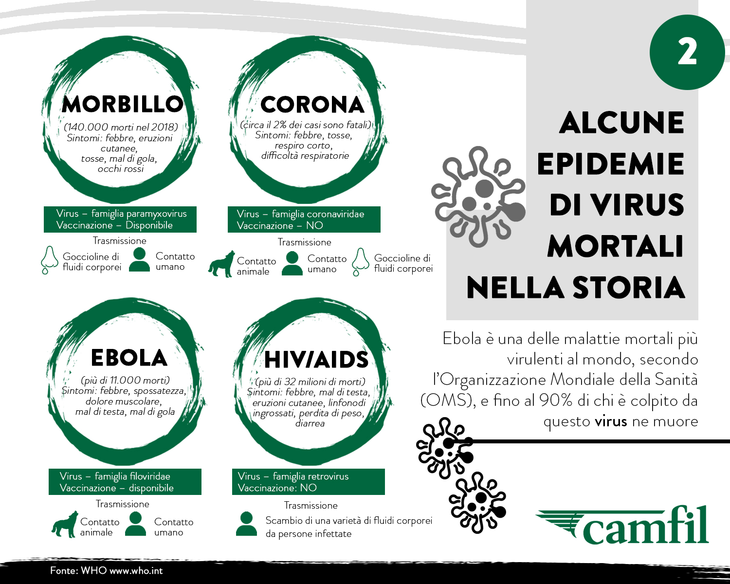 Mantenere un buon livello di igiene e coprire la bocca con una maschera sono modi validi per rimanere protetti, ma sono sufficienti? Ci sono vaccinazioni disponibili per alcuni virus e per altri no. I virus per i quali non sono stati trovati vaccini sono più ardui da controllare, e in combinazione con un elevato tasso di infezione e mortalità essi possono diventare gravi e generare pandemie difficili da gestire. L'OMS (Organizzazione Mondiale della Sanità) ha più volte nella storia dichiarato allerta epidemie causa di infezioni letali da virus, e qui se ne trovano alcuni degni di nota. Nel febbraio 2003, Severe Acute Respiratory Syndrome (SARS) ha ucciso circa 1 persona su 10 persone colpite. In 40 anni il virus Ebola ha ucciso da 25% al 90% delle persone infettate. Il nuovo Coronavirus la cui diffusione è iniziata nel 2019, riporta più di 40.000 casi segnalati e questo numero è in crescita.