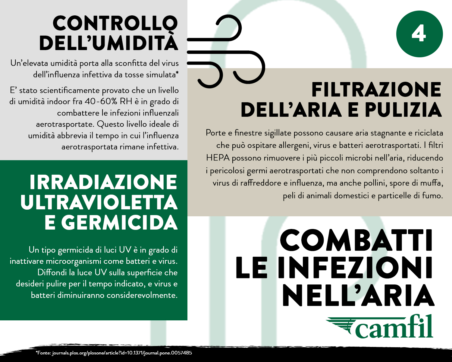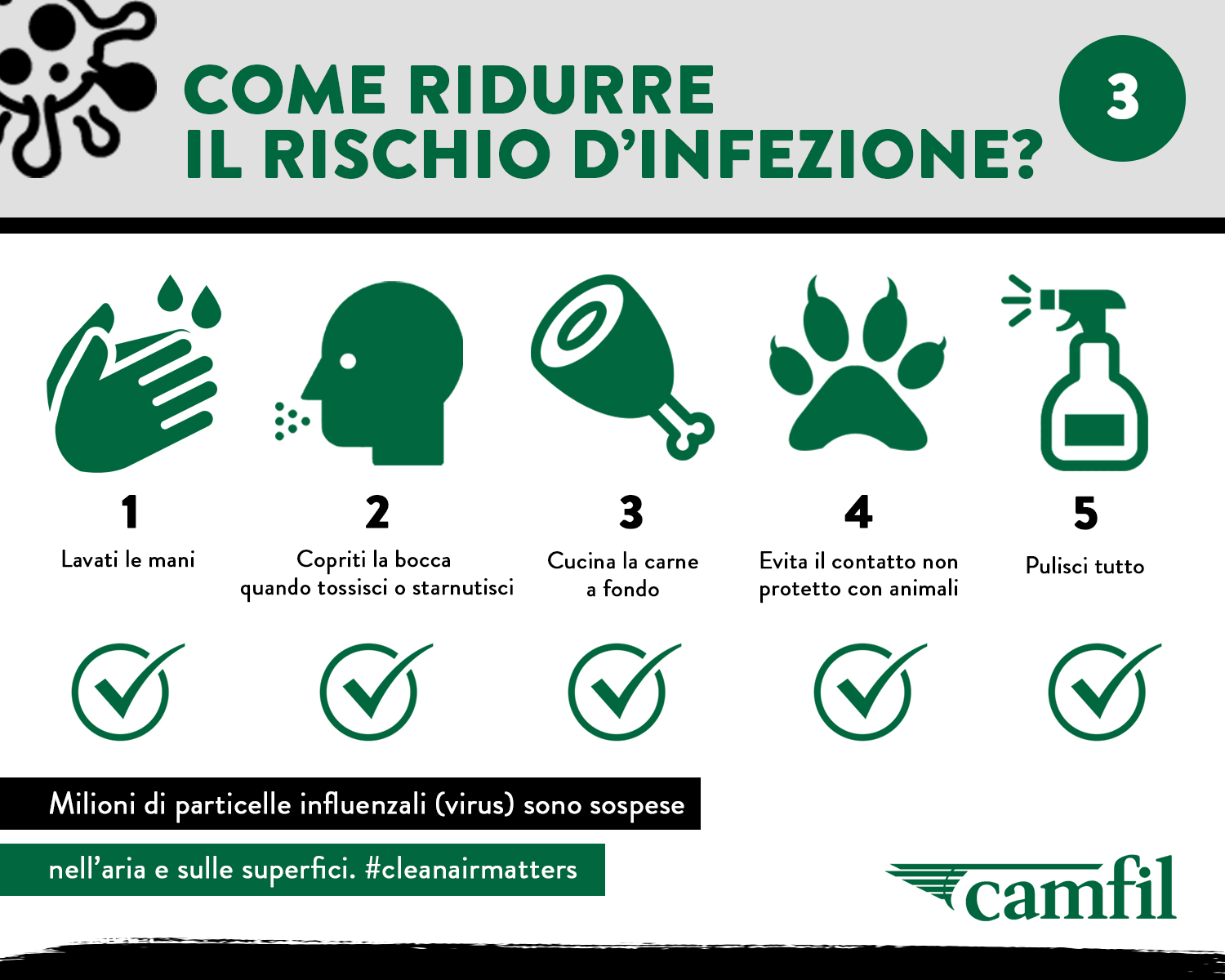 Dunque, per un'ulteriore protezione dai patogeni aerotrasportati considerate l'installazione di filtri HEPA appropriati.