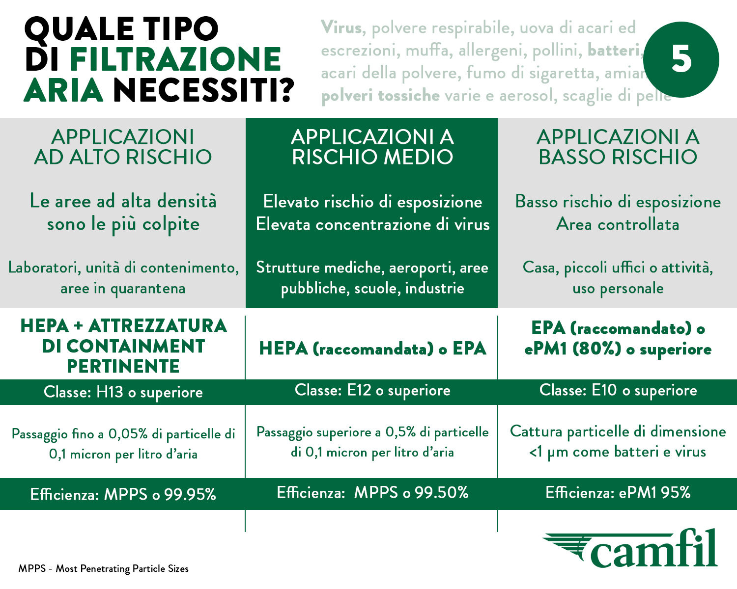 HEPA filters (high-efficiency particulate) sono stati impiegati per decenni in un'ampia varietà di strutture sanitarie e applicazioni life science, controllando la diffusione di particelle aerotrasportate e organismi come virus e batteri.