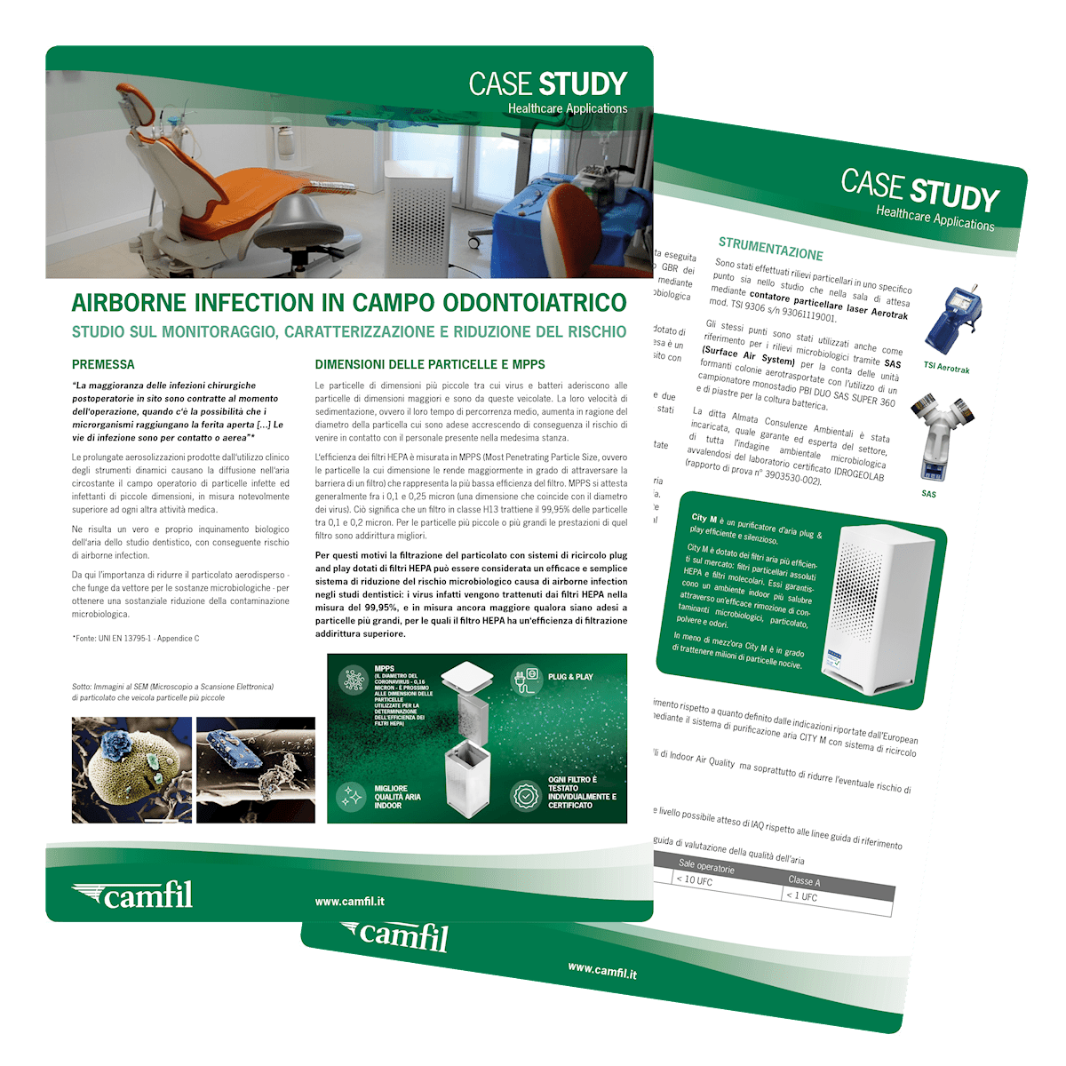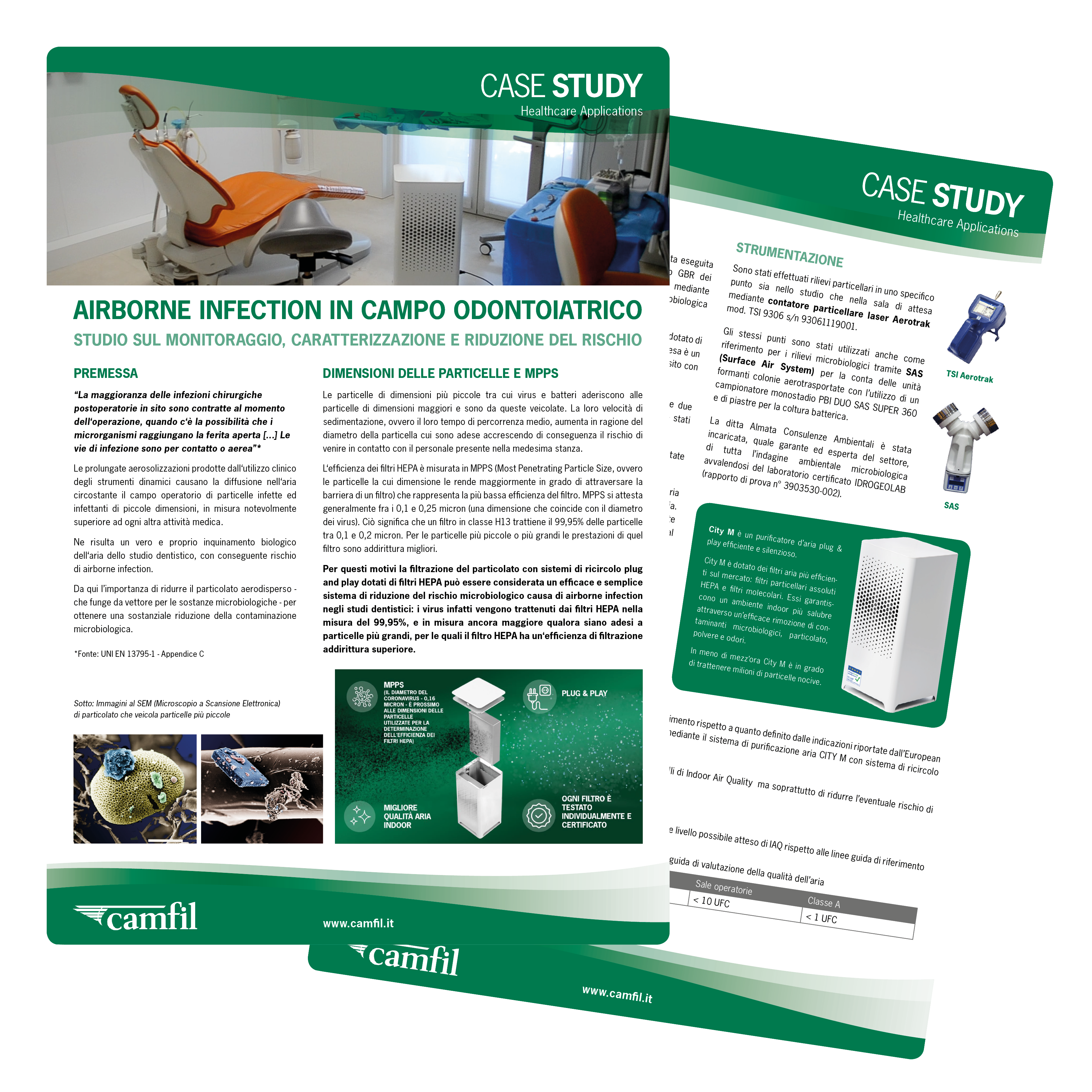 La qualità dell’aria negli ambulatori dentistici rappresenta un fattore importante per la riduzione del rischio dovuto ad airborne infection sia per i pazienti che per gli operatori. Il purificatore d’aria Camfil City M si è rivelato di semplice installazione ed utilizzo, e soprattutto si è rivelato efficace per la riduzione di entrambi i parametri particellari e microbiologici anche a portate di ricircolo medie, sia in prossimità del riunito che nella sala d’aspetto.