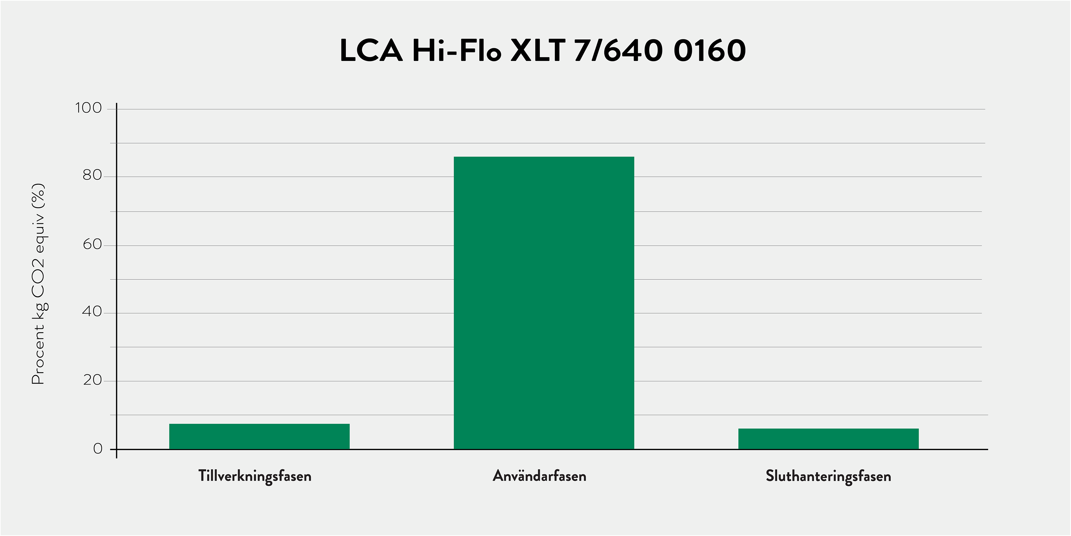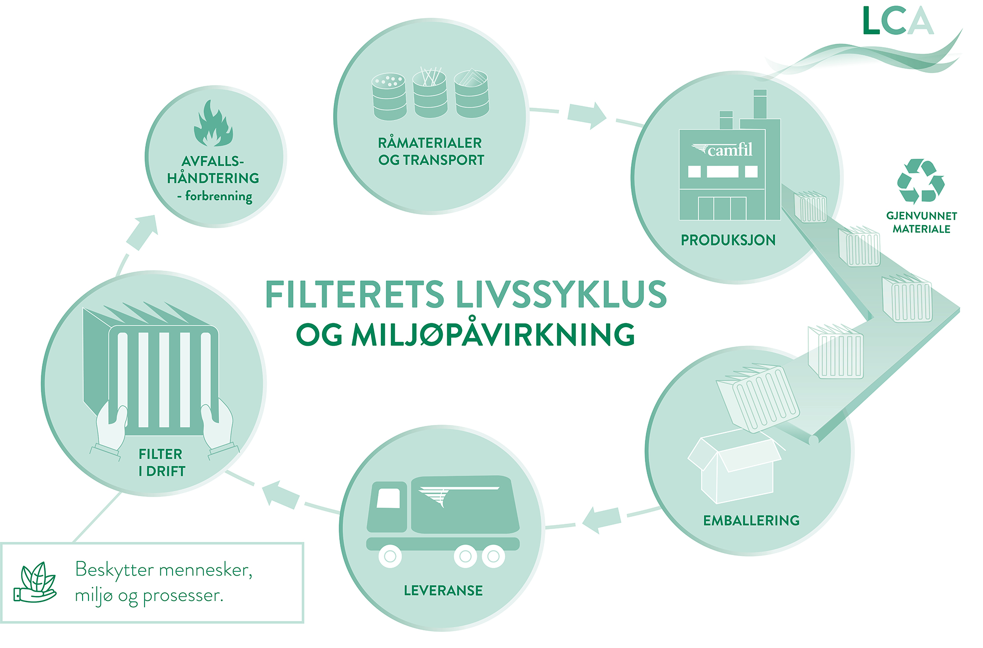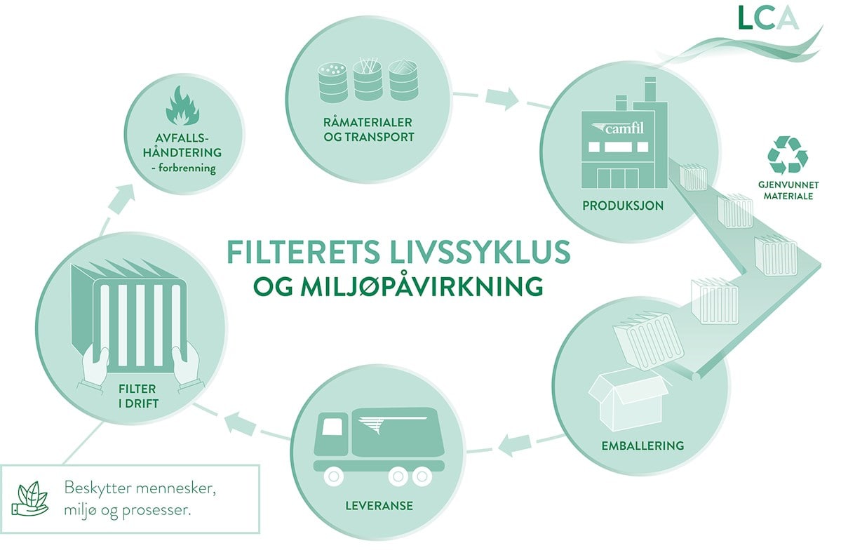 Filterets levetid er helt avgjørende for filterets miljøpåvirkning. Mengden energi som viften bruker for å trekke luften gjennom et luftfilter utgjør omtrent 90% av filterets totale klimapåvirkning.
