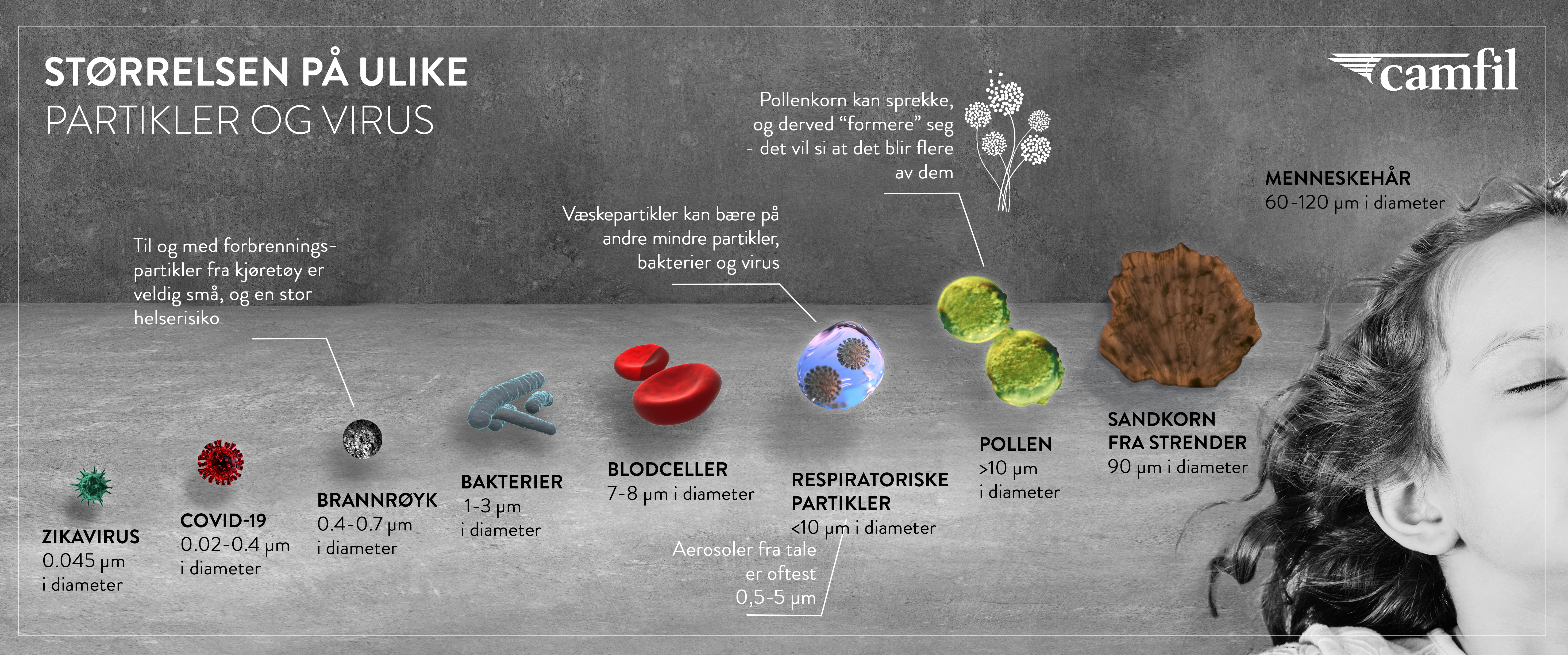 Det er flere faktorer som påvirker hvordan partikler sprer seg. Miljøet er en avgjørende faktor – og ventilasjonen er av stor betydning. Ved dårlig ventilasjon eller resirkulering av luft fanges ikke partiklene godt nok opp, og risikoen for infeksjon øker. Partikler som er <5 µm klassifiseres som luftbårne, noe som betyr at de flyter lengre i luften og sprer seg lettere. Partikler som er> 5 µm kalles dråper. De er tyngre, noe som også betyr at de faller raskere til bakken, ca 1 mm/sekund. I følge Jakob Löndahl, førsteamanuensis ved Lunds universitet, vil partikler og dråper opp til 100 mikrometer bevege seg et godt stykke i luften. Når vi inhalerer infisert luft på kort avstand (dråpeinfeksjon), inneholder den alltid en blanding av store og små partikler.