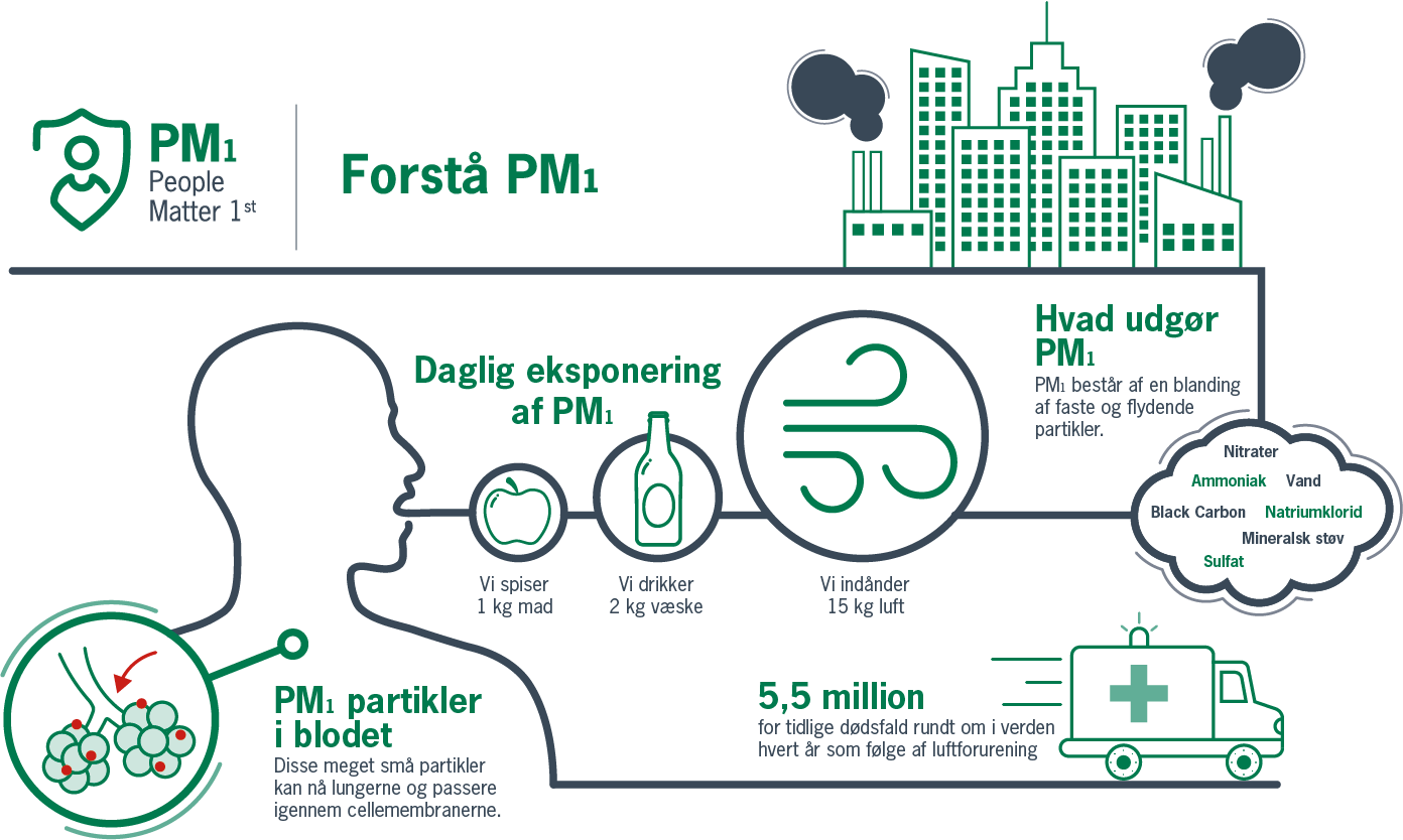 Om vinteren er det generelt mer av de minste partiklene, PM1, i luften. Det skyldes at de fleste partiklene av denne størrelsen kommer fra forbrenning, for eksempel eksos fra trafikken og utslipp fra varmeanlegg. PM1-partikler er de partiklene som utgjør den største helserisikoen, ettersom menneskekroppen ikke har noe naturlig forsvar mot dem. Jo mindre partiklene er, desto større er risikoen for at de går over i blodet og når kritiske organer.