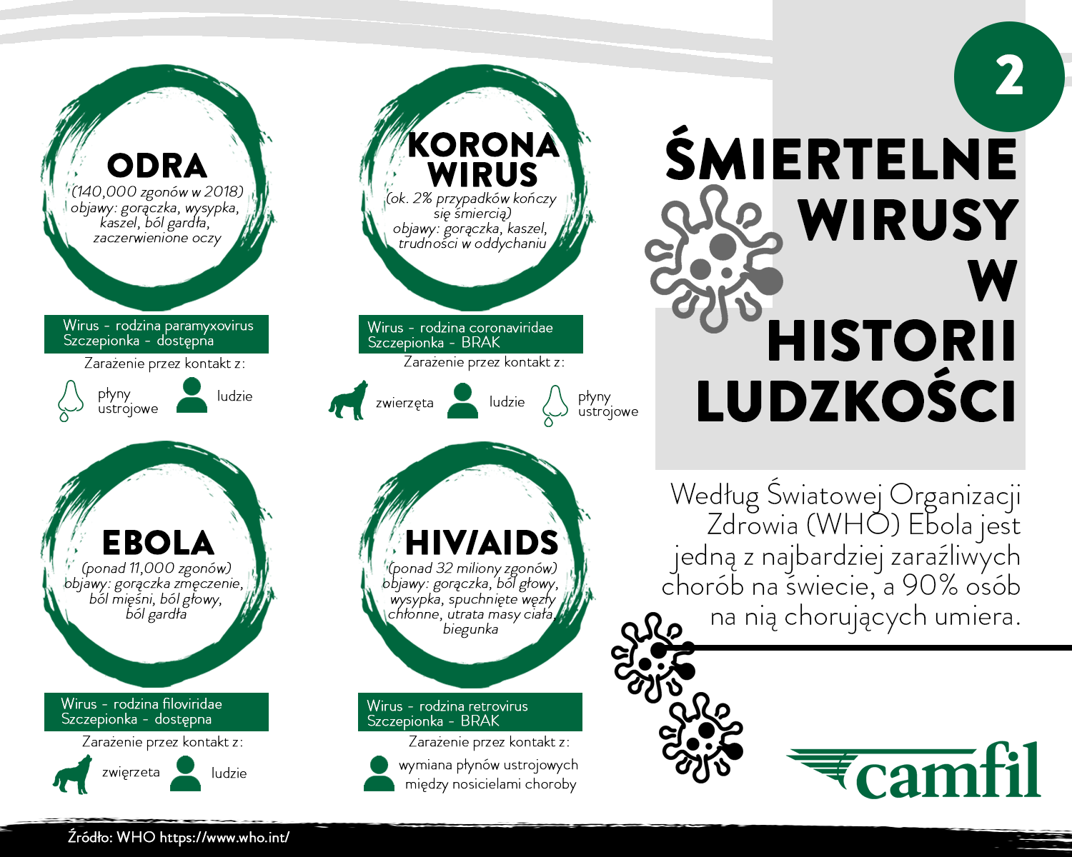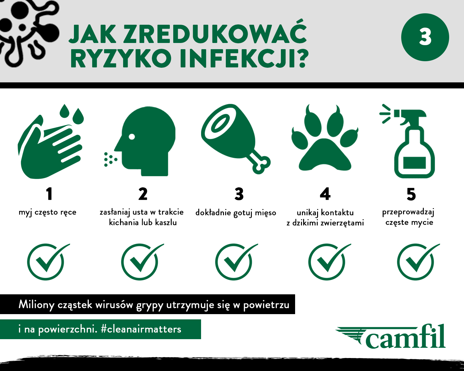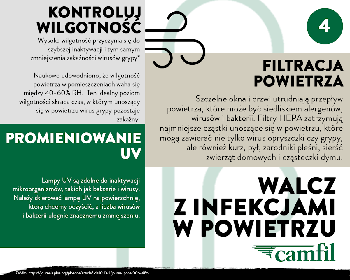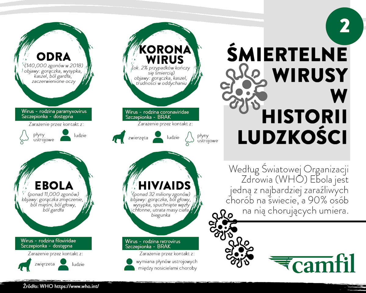 Camfil na całym świecie uważnie śledzi wiadomości dotyczące epidemii Koronawirusa (COVID-19). Sytuacja zmienia się dynamicznie i z dużym prawdopodobieństwem będzie się dalej kształtować w najbliższych dniach i miesiącach.