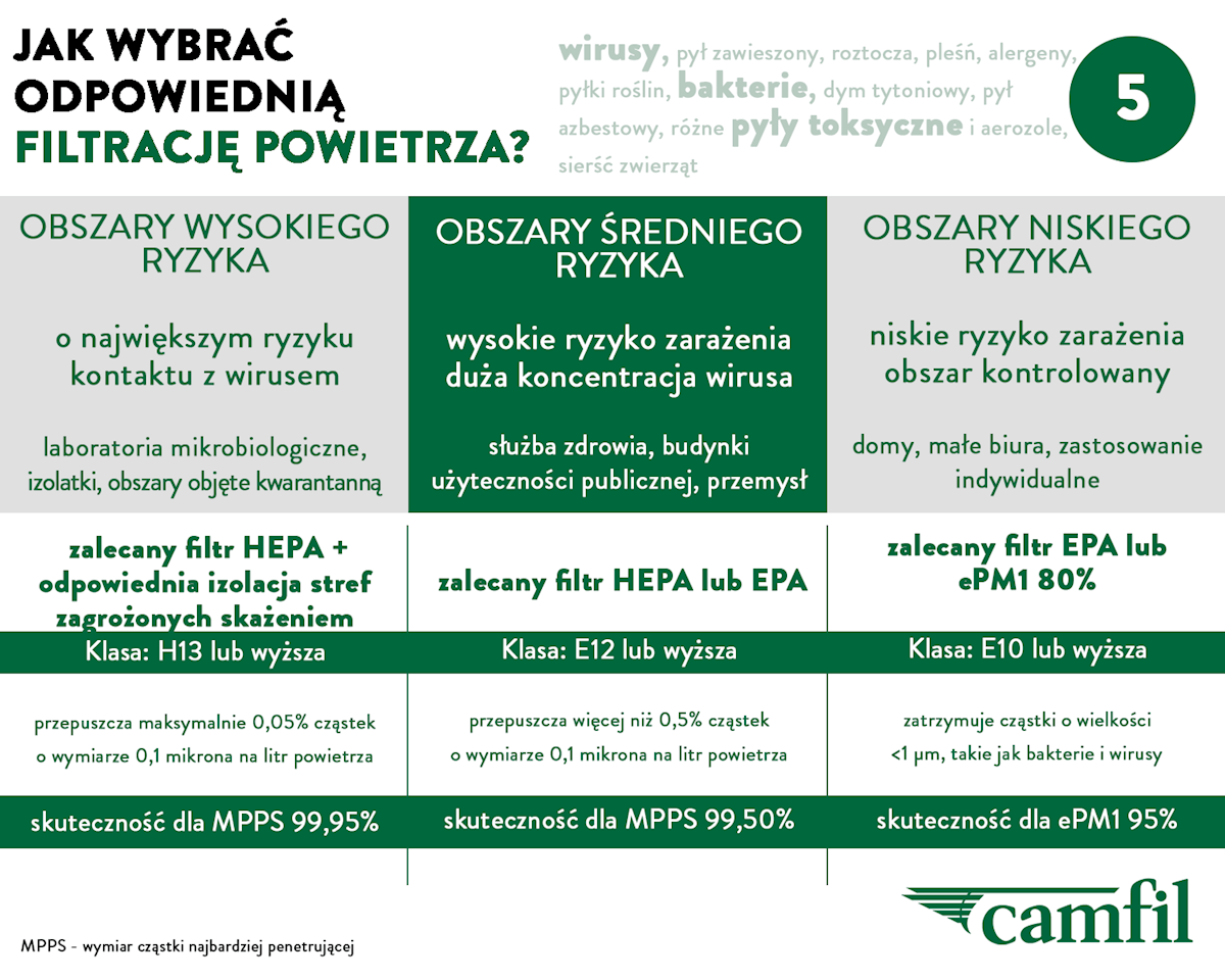 Filtry HEPA (wysokoskuteczne filtry przeciwpyłowe) zostały przetestowane przez dziesięciolecia w wielu placówkach służby zdrowia, a także w zastosowaniach w branży Life Science, kontrolując rozprzestrzenianie się cząstek stałych w powietrzu i organizmów takich jak wirusy i bakterie.