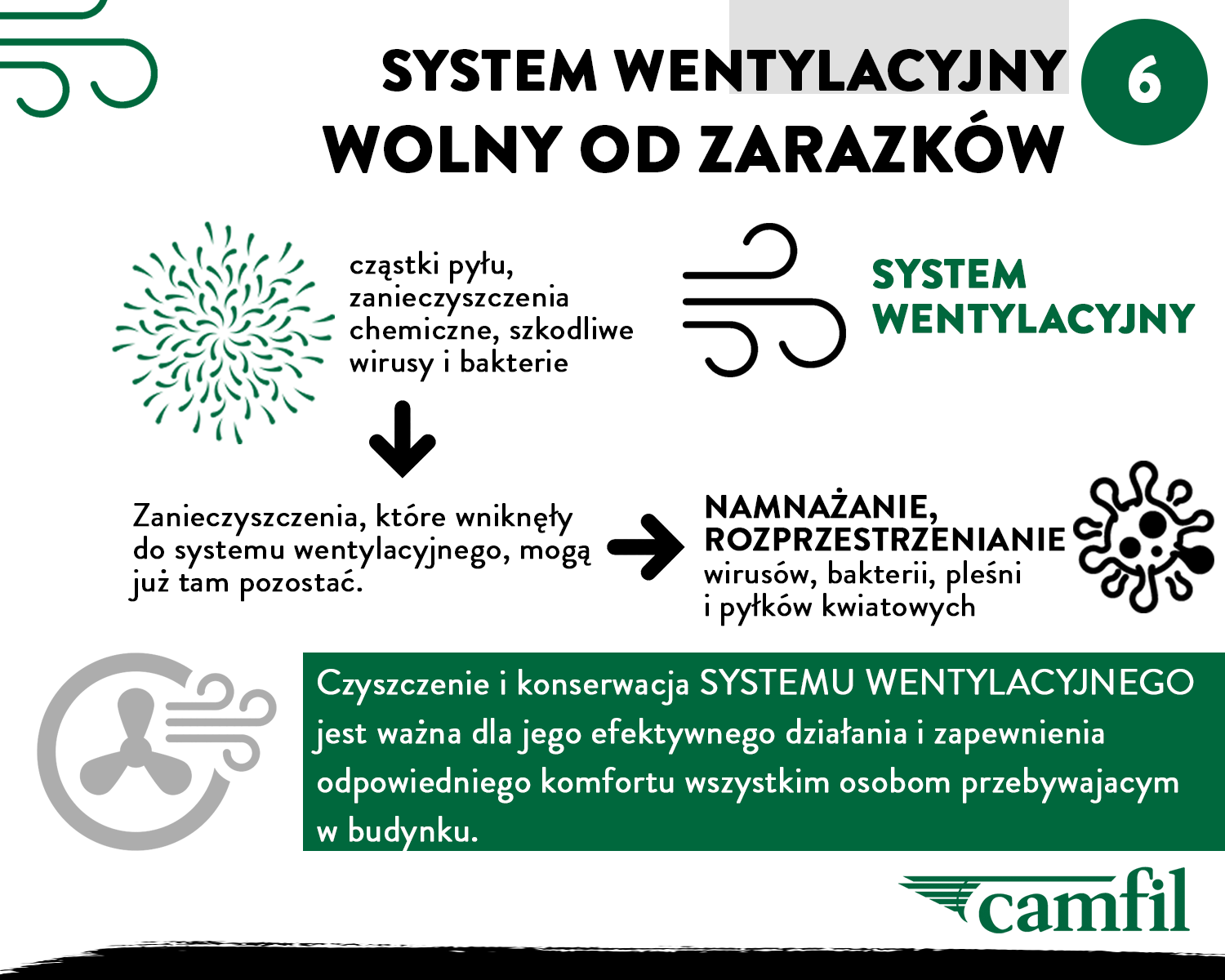 W systemach wentylacyjnych HVAC kumulowane są wszelkiego rodzaju zanieczyszczenia: cząstki pyłu, kurz, zanieczyszczenia chemiczne, szkodliwe wirusy i bakterie i inne toksyczne związki. Część z tych substancji zostaje zatrzymana na filtrach, w kanałach wentylacyjnych lub innych elementach centrali i tam pozostaje. Jest to bardzo szkodliwe i może powodować poważne zagrożenia dla zdrowia. Aby uniknąć jakichkolwiek utrudnień, idealnym rozwiązaniem jest czyszczenie i konserwacja systemu wentylacyjnego. Czysty system wentylacyjny przyczyni się do poprawy jakści powietrza wewnątrz pomieszczeń. W przypadku wybuchu epidemii pierwszym krokiem powinno być sprawdzenie, jak stare są filtry i czy są mocno zabrudzone (zanieczyszczenia zatrzymane na filtrze, które mogłyby wspierać rozwój pleśni). Należy również upewnić się, że uszczelki na filtrach czy ramach montażowych są w dobrym stanie i nie przepuszczają niefiltrowanego powietrza. W zależności od rodzaju urządzenia i jego złożoności można to zrobić samemu lub zlecić profesjonaliście. Dla krytycznych aplikacji wysokiego ryzyka zaleca się stosowanie systemu bezdotykowej wymiany filtra bag in & bag out dzięki której nie ma bezpośredniego kontaktu z zanieczyszczeniami, patogenami i szkodliwymi cząstkami.