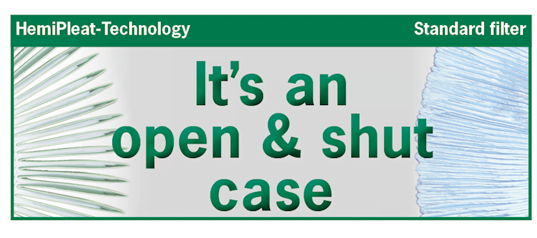 • Compared to filters without HemiPleat technology, HemiPleat filters hold a larger volume of dust before needing to be cleaned.