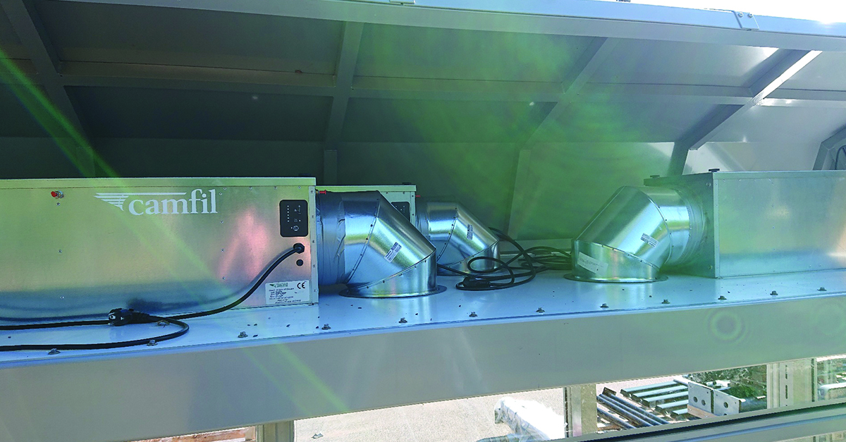 Contaminated air is drawn into the roof of the Clean Shelter through pre-filters in each end to be further purified by Camfil’s latest air purifier. The air – up to 85 percent purified – is then blown into the shelter through openings in the roof. To help the waiting passengers feel safe, the shelter is equipped with an air curtain that has openings as a barrier to the outside instead of physical doors. The air purifiers operate at a low noise level, and the passengers waiting for the bus will not experience any appreciable drought.