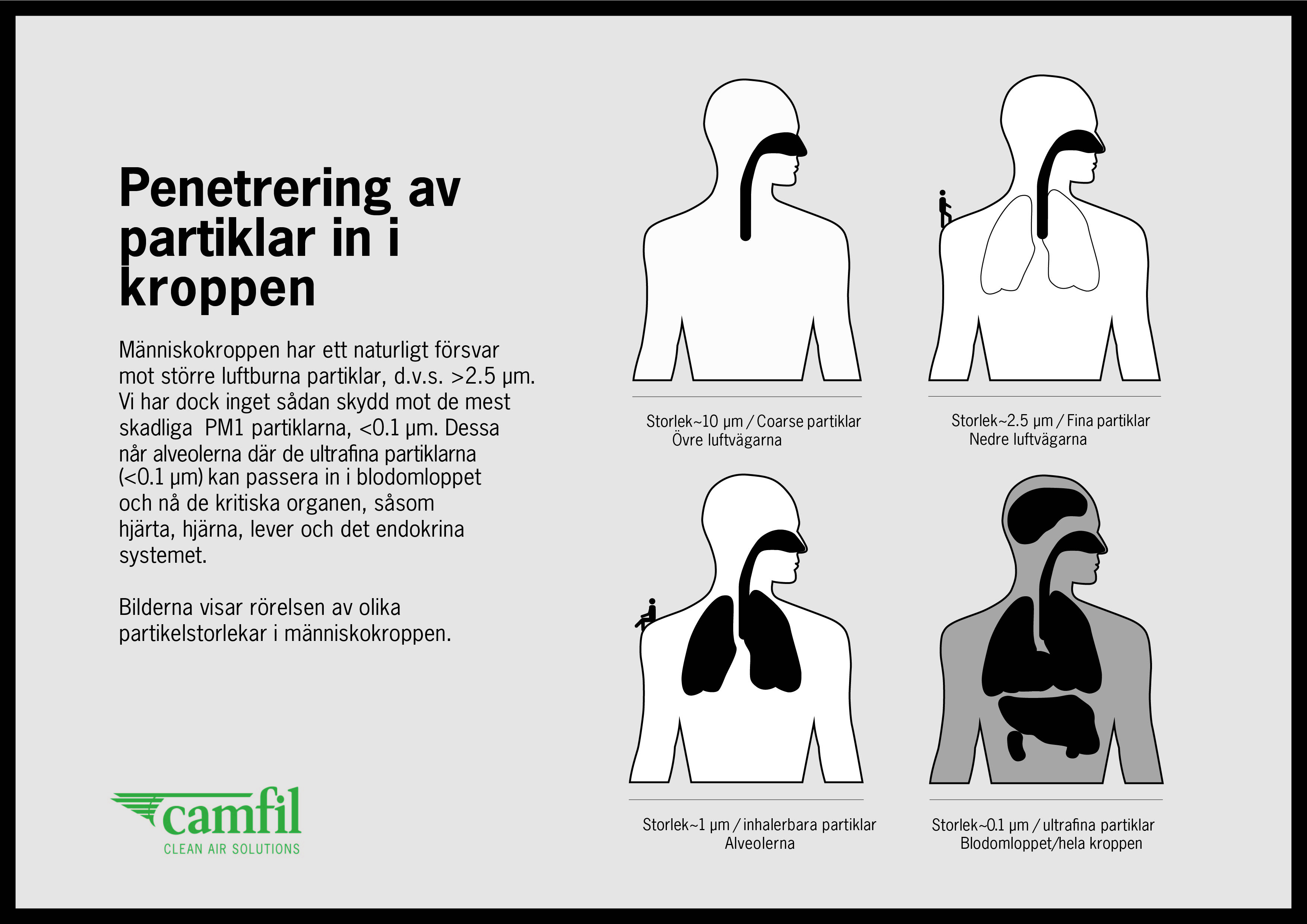 Inomhus exponeras vi för en rad olika partiklar och föroreningar som har en direkt koppling till vår hälsa. Om tilluften inte filtreras effektivt finns det risk att en stor mängd skadliga partiklar tillförs i inomhusluften. Partiklarna tar sig in via våra andningsorgan och vidare till kroppens cirkulationssystem.